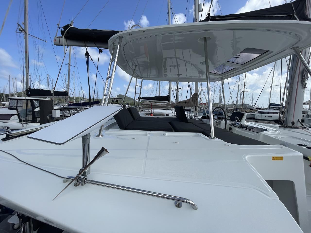 Solar panels 6 x 150w on the composite bimini et 1 x 150w on roof
