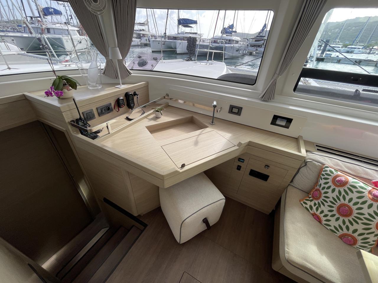 Chart table forward port in saloon