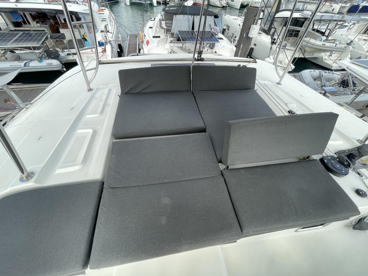 Sunbathing cushions on the fly bridge with lift-up backrests