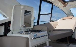 Water pressure pump, Special Colour, Deck Shower, Electric Flaps, Tender Garage, Hard top, Fire Extinguishing System, Courtesy Lights, Gangway, Automatic Bilge Pump, Manual Bilge Pump, Teak Cockpit, Shorepower connector, Water harbor connector system, Electric Windlass, swimming ladder, cockpit table.