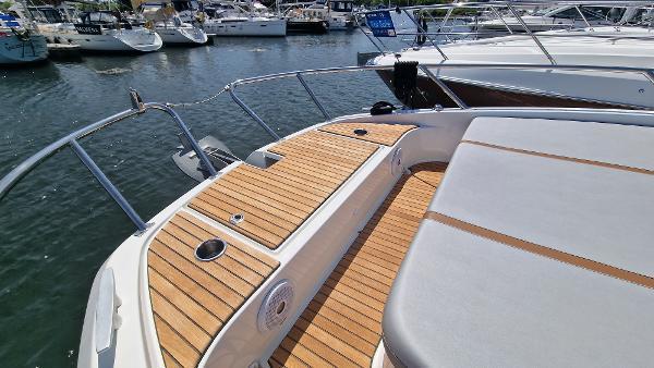 Featuring the smart walkaround concept, the Flyer 10 marries easy movement on board with safety, and with an asymmetric single port walkway, she offers a bigger deck space, with a vast three people sunbathing area, and a unique amount of cabin space.