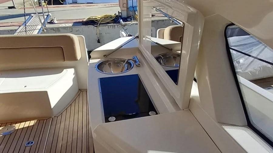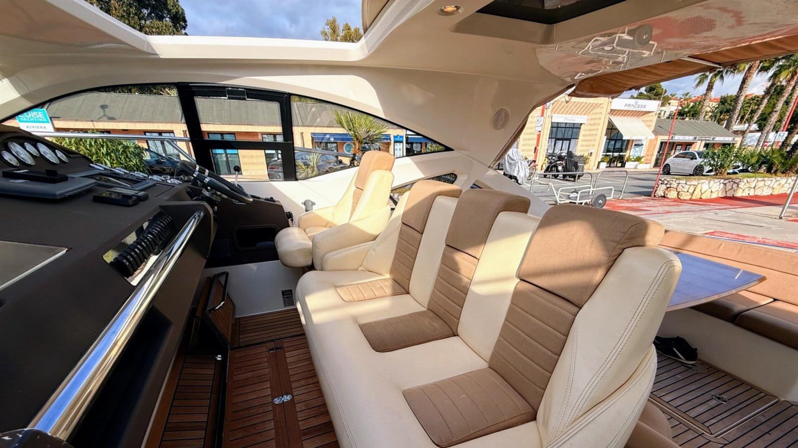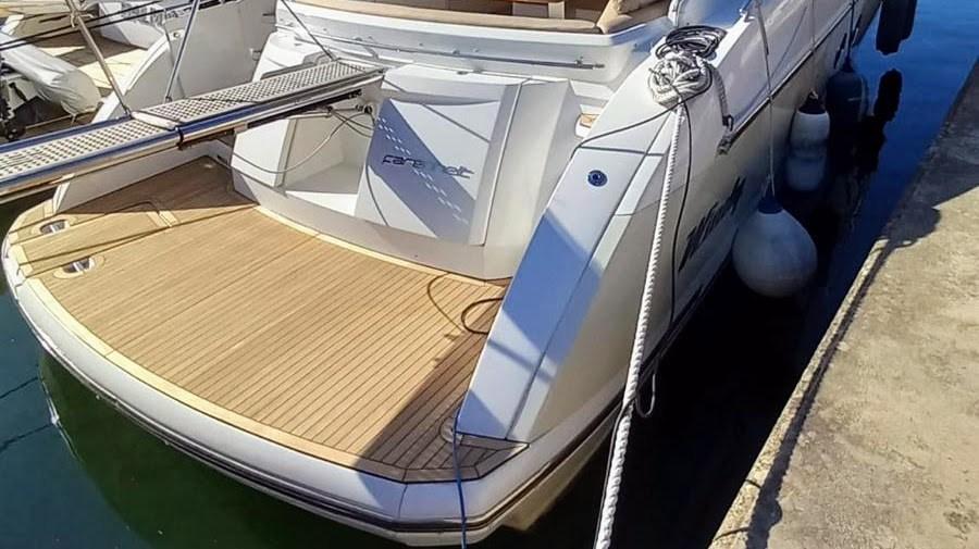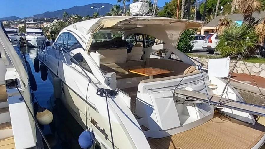 Engine Alarm, Bilge Alarm, Anchor (inox), Water pressure pump, 4 Batteries, Special Colour (crème), Deck Shower, Electric Flaps, Hard top (avec toit ouvrant), Washbasin in the cockpit, Courtesy Lights, Gangway (hydraulique), Platform (teck refait a neuf 2024), Automatic Bilge Pump, Teak Cockpit, Shorepower connector, Electric Windlass, swimming ladder, cockpit table.