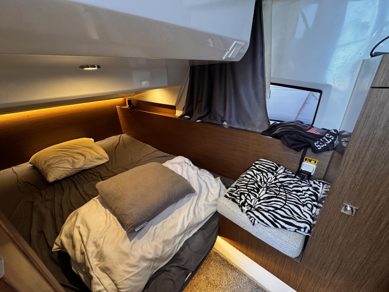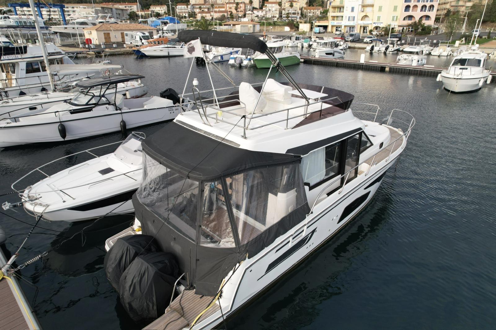 Discover one of the few models on the market to combine a powerful outboard engine with a flybridge and offer three beautiful double cabins. With its exceptional layout, it is perfectly designed to accommodate family and friends for comfortable and elegant cruises.