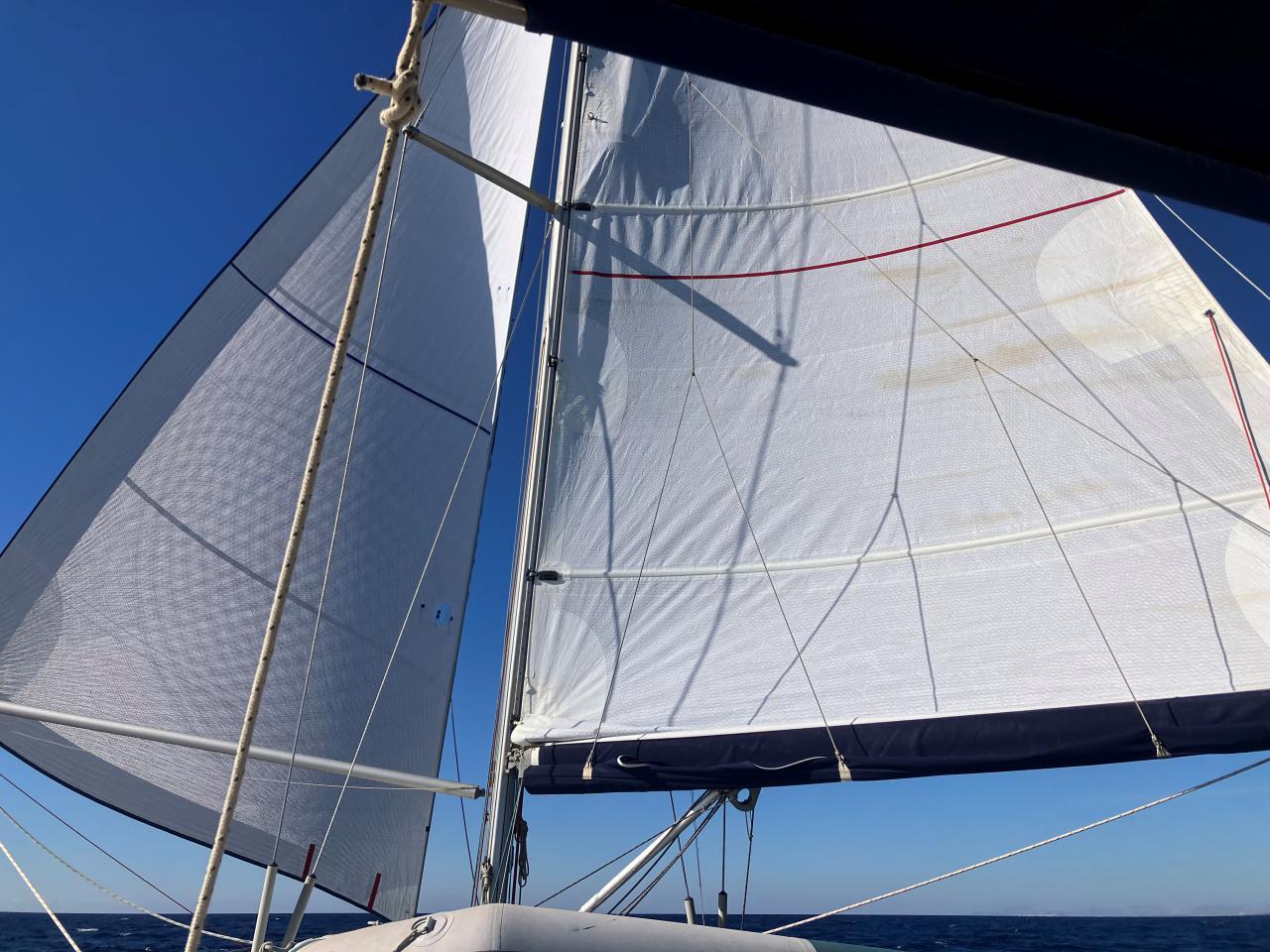 S Z-Diffusion mast with Facnor luff traveler and carriages on bearings New 2023 full batten main sail Filmless Twaron Dyneema of45 m2, two automatic reefs and a third half automatic