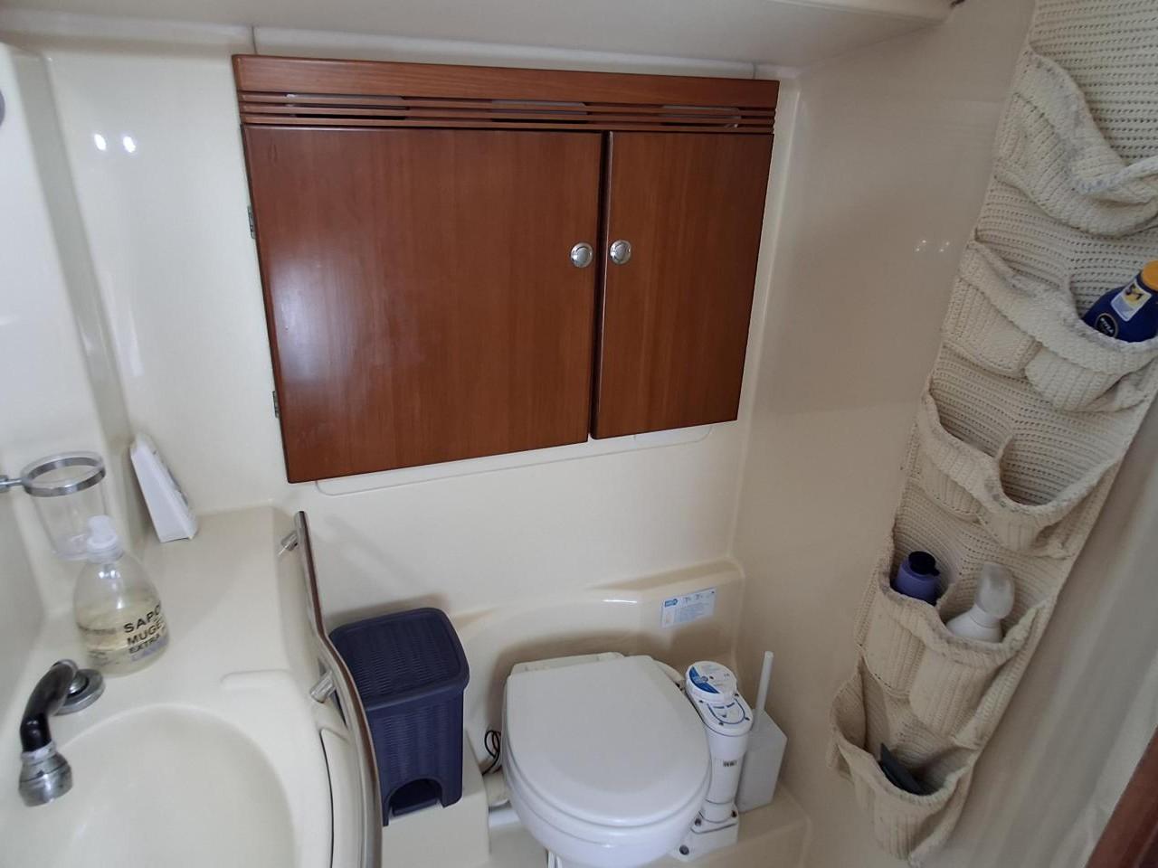 one washbasin, shower and marine toilet on starboard with holding tank 60 L