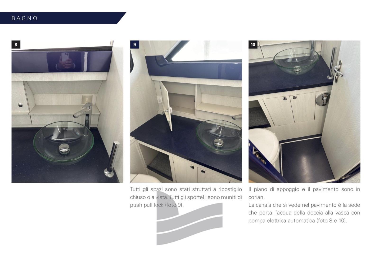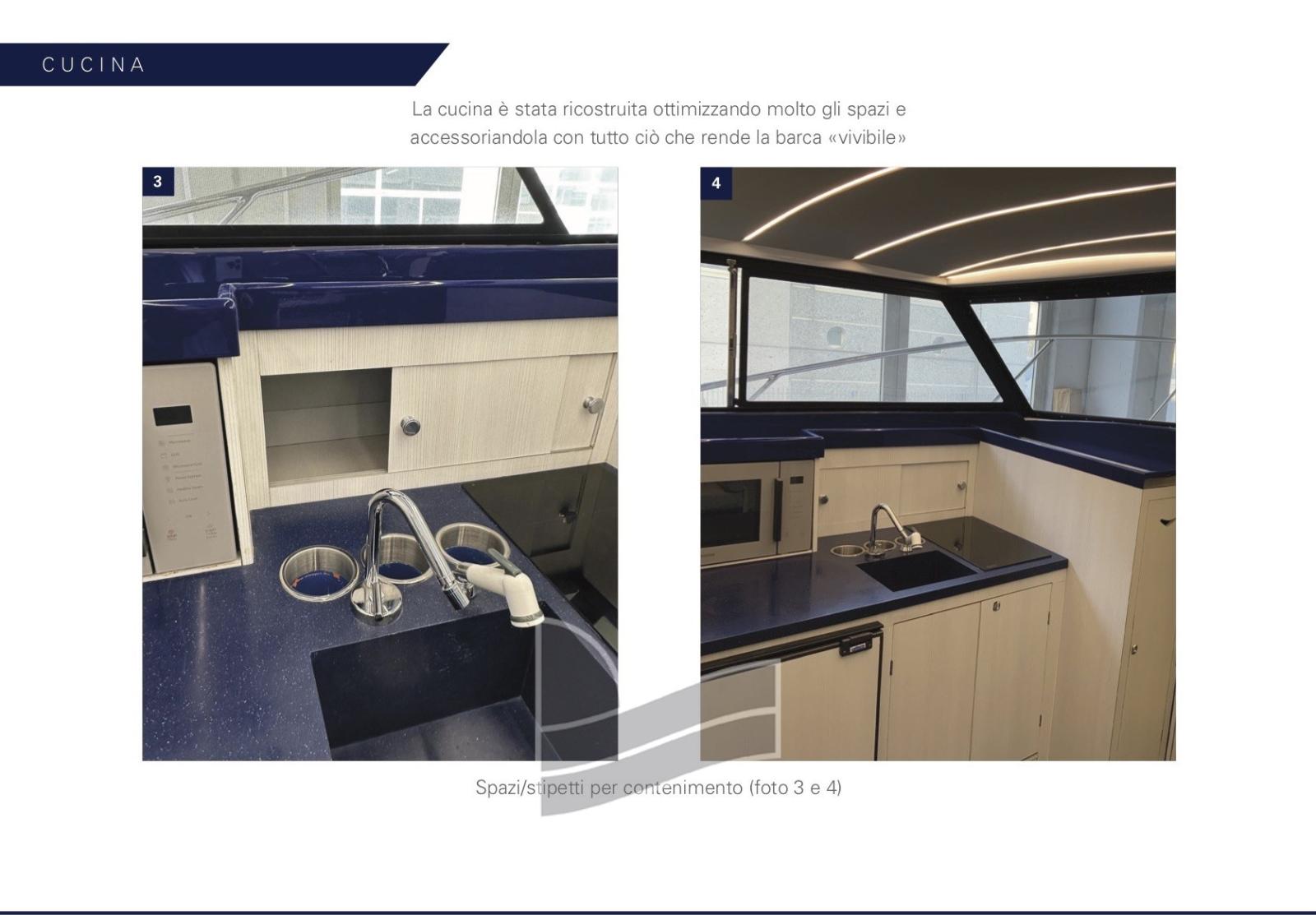 Engine Alarm, Water pressure pump, Deck Shower, Twin Steering, Hydraulic Flaps, Automatic Bilge Pump, Voltage Rectifier, Electric Windlass, swimming ladder.