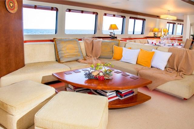 The yacht can accommodate 7 guests in 4 staterooms, comprising a master stateroom, VIP cabin, twin cabin with Pullman and on deck single cabin.