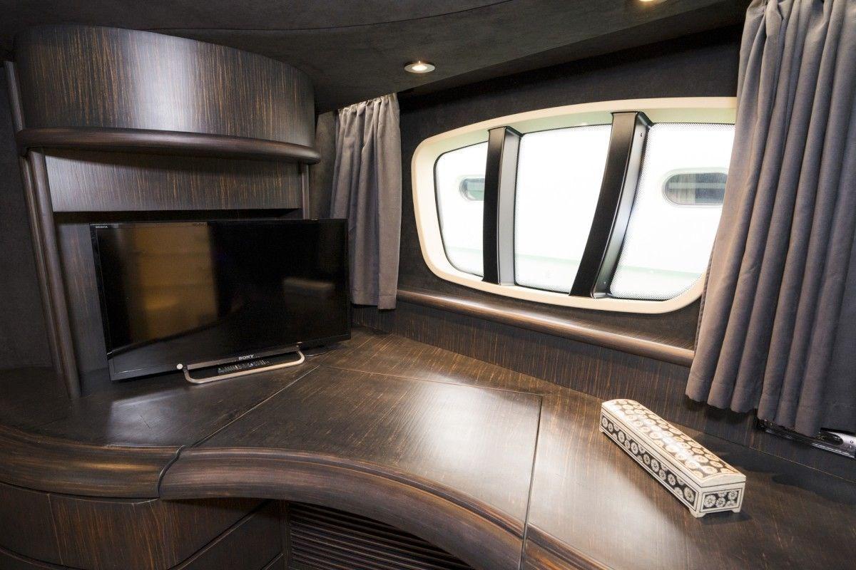 Teak Side Decks, Battery charger (Charger Mastervolt 60A with inverter 2700W), Stern Thruster (remote controlled), Bow Thruster (remote controlled), Tender Crane (650kg), Teak Cockpit, Stabilizers, Tender (Avon Jet 430), Teak Deckhouse.