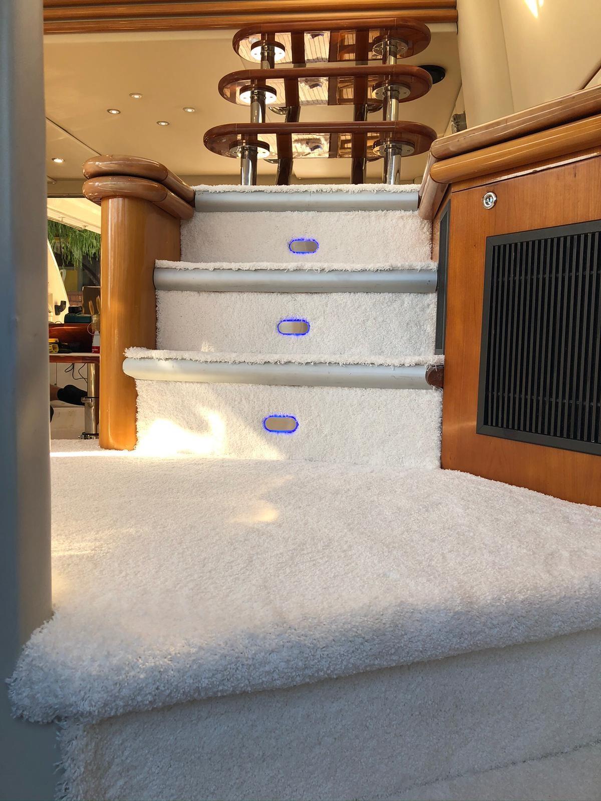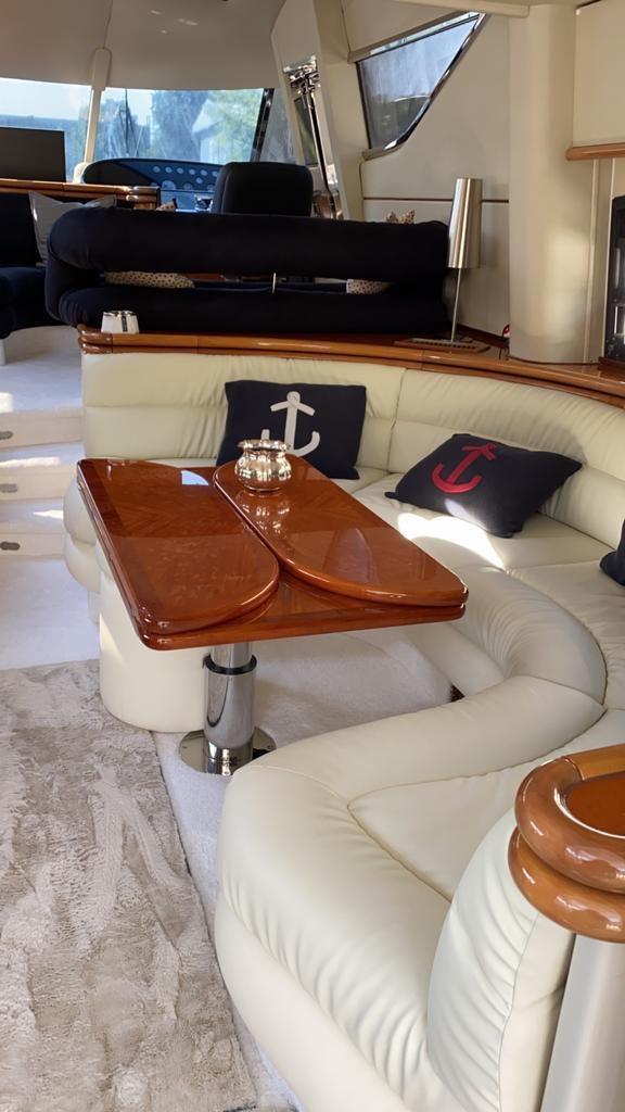 Engine Alarm, Bilge Alarm, Water pressure pump, 14 Batteries (4x Moteurs, 10xService -2019), Battery charger (Mastervolt), Deck Shower, Stern Thruster (2020), Bow Thruster (2020), 2 Hydraulic Flaps, Tender Crane, Davits for tender on fly (Bezenzoni), Fire Extinguishing System, Anchor Chain Washdown, Auxiliary Engine, Gangway (Hydraulique), Platform, Electric Bilge Pump (2021), Entry door, Teak Cockpit, Shorepower connector, Electric Windlass, swimming ladder, Waste Water Purifier System, Stern Winches.