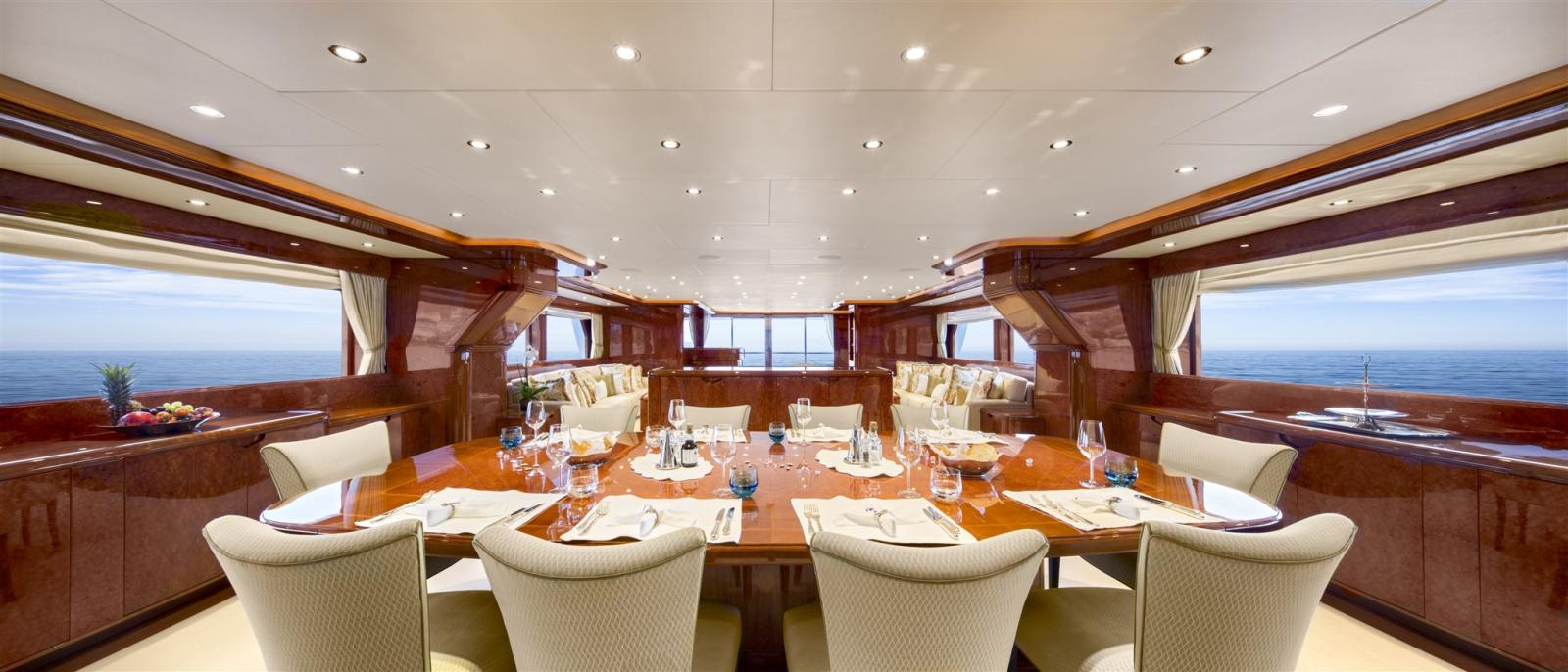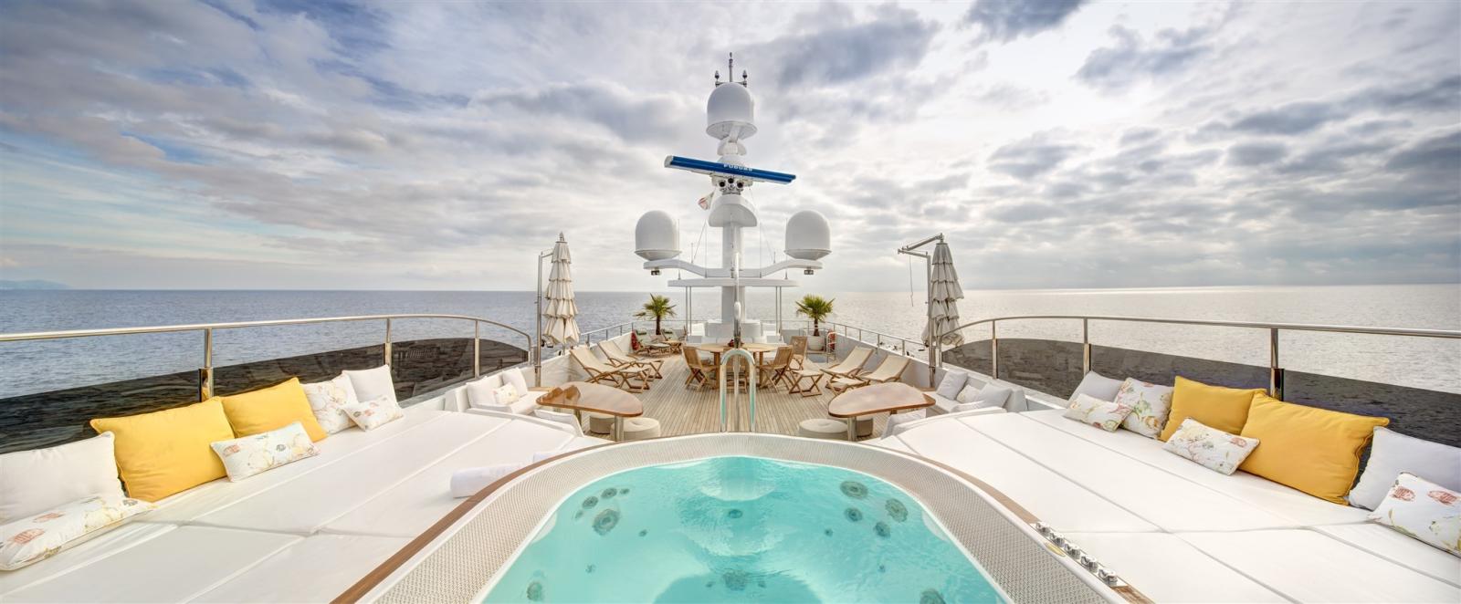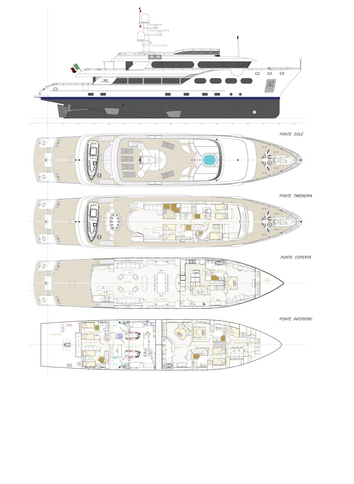She is a pleasure steel and aluminium alloy long range motoryacht. Her displacement hull comes from the offshore supply explorer vessels, supplied with reinforced structures in the bow for high latitudes, makes her a unit destined to unlimited navigations. Her autonomy gets up to 10000 miles at the speed of ten knots, allows to reach up to 6500 miles at the cruising speed of twelve knots and draws up to 4000 miles at the maximum speed of fourteen knots. She is supplied with four Zero speed Najad stabilisers which guarantee the maximum comfort at sailing and at anchor, minimising roll and pitch. She has been built for the commercial and pleasure Markets.