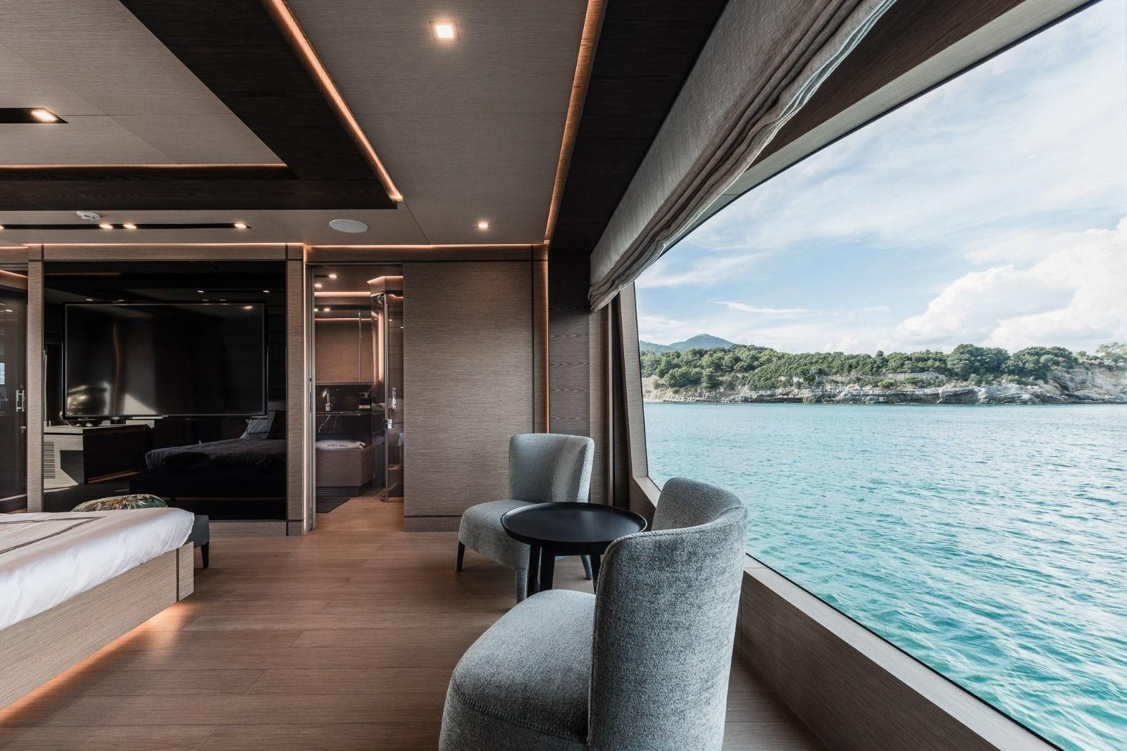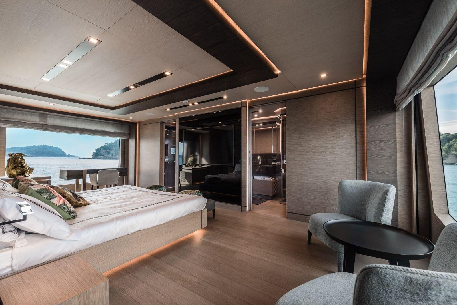 – Master Suite on the main deck, full beam and super beamy (and several options for expansion/reconfiguring, like a private gym or studio or massage room or playroom or library or.......);