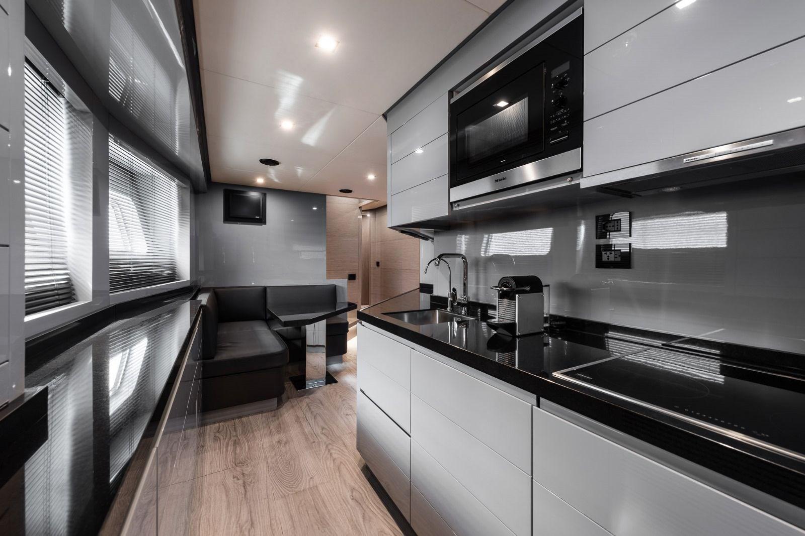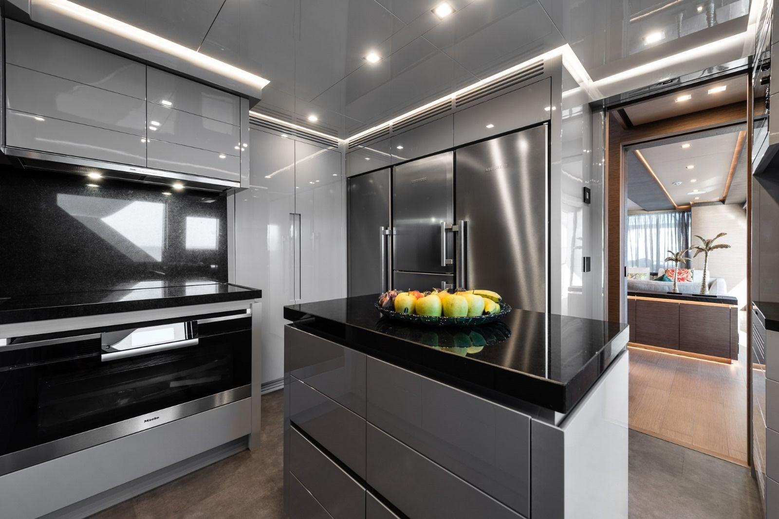 – Two aft garages: one side-type for a large tender (a William 625 can fit in); plus, and aft garage for jet-ski or a smaller