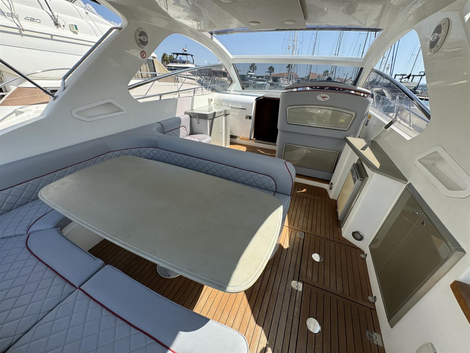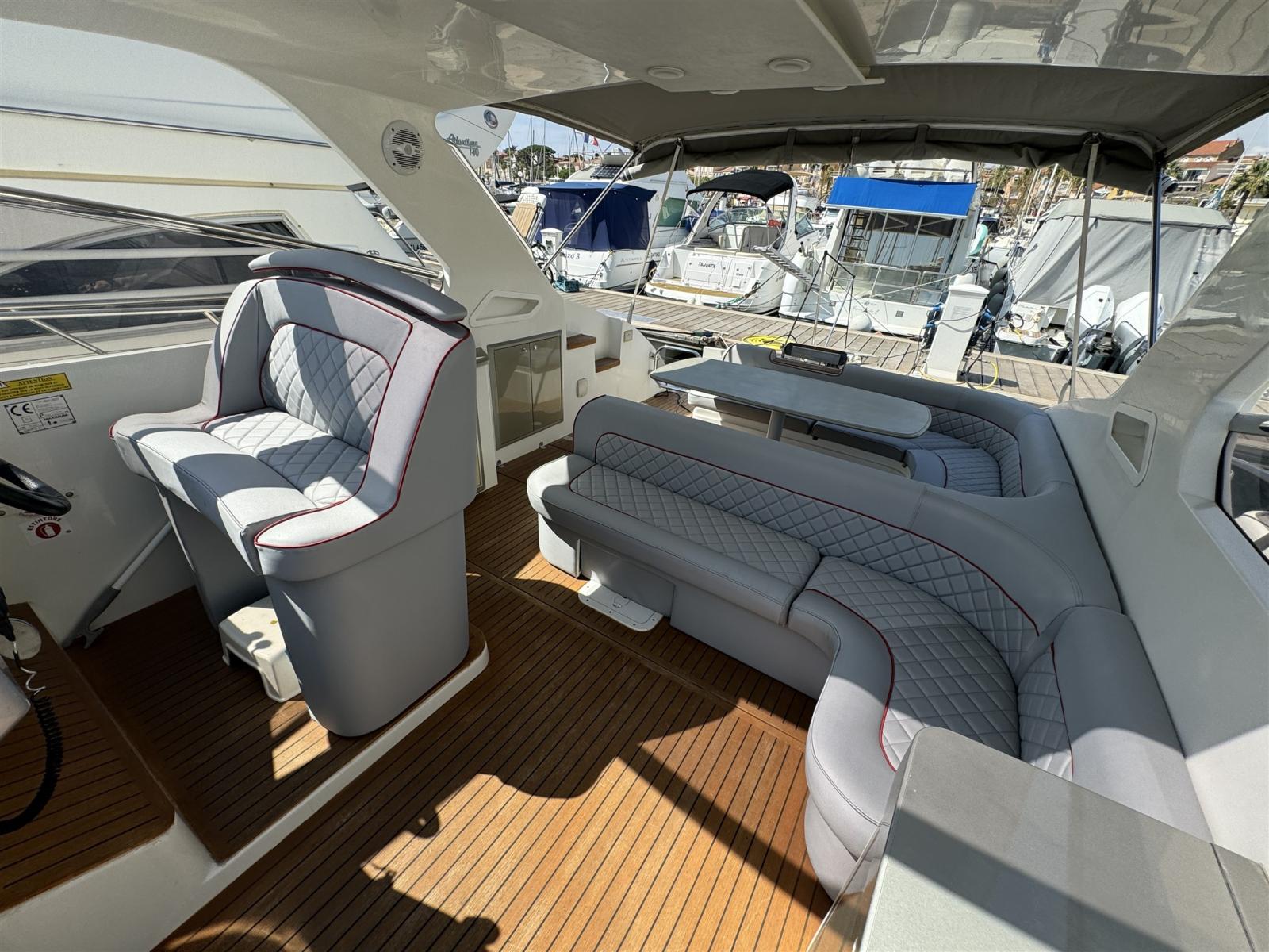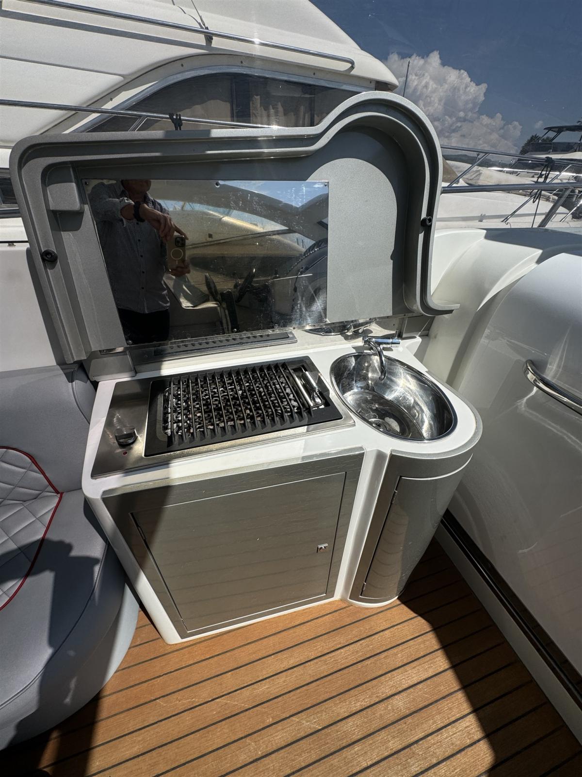 Water pressure pump, Deck Shower, Hard top, Fire Extinguishing System, Washbasin in the cockpit, Gangway, Platform (teck), Automatic Bilge Pump, Teak Cockpit, Shorepower connector, Voltage Rectifier, Electric Windlass, swimming ladder, cockpit table.