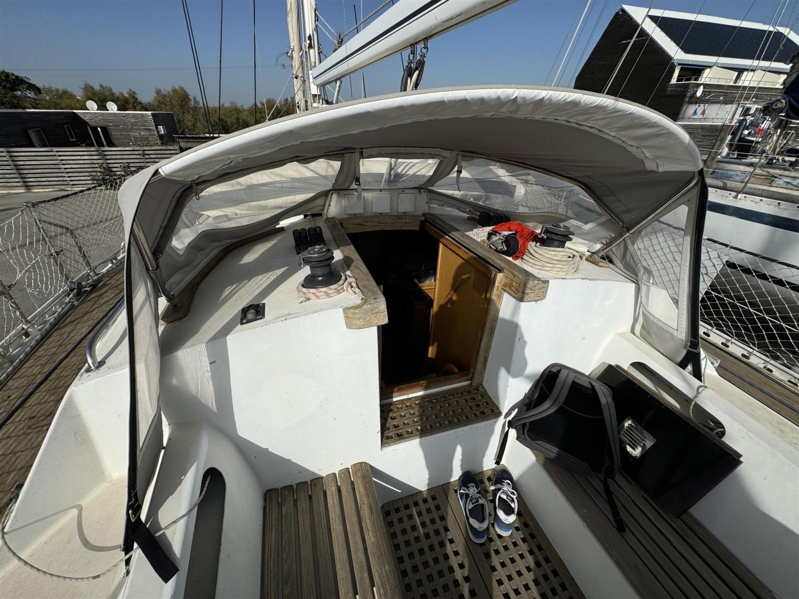 Anchor (20kg - 40m chaine - 2022), 6 Batteries (Service/5x100Ah - 2023 + 1 moteur 110Ah), Teak Side Decks, Battery charger (Tecpro 12V40A), Deck Shower, Bow Thruster (Rétractable Side Power - révisé en 2024), Wind Generator (Spreco Sharky 400W - 2023), Auxiliary Engine (Yamaha 3CV), Solar panels (2x120W sur portique x - 2023), Automatic Bilge Pump (2024), Electric Bilge Pump (2021), Manual Bilge Pump, Teak Cockpit, Electric Windlass, Strand rigging (étai de 2025), cockpit table (pliable - 2023), Tender (Zodiac - 6p), Teak Deckhouse, Winch (2xHarken 32, 1Lewmar30, 1 Lewmar 43), Winch Electric (2 x ST56 - 2018).
