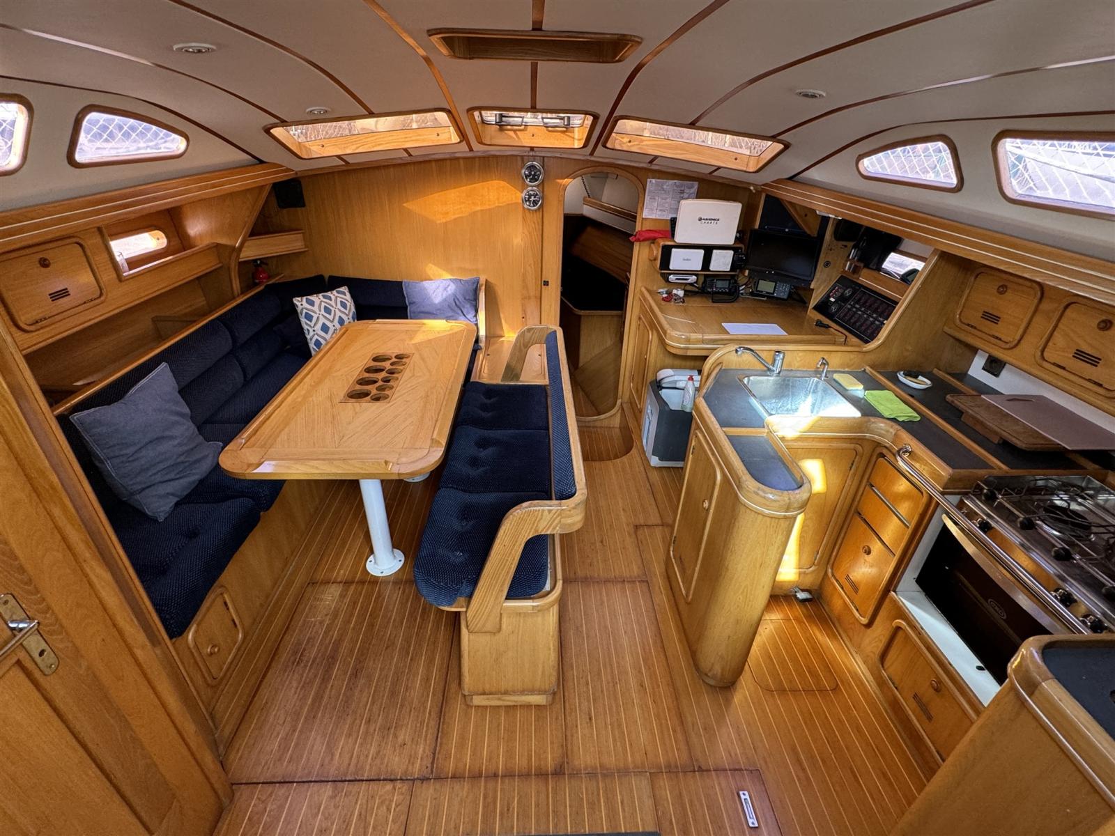 Facilities: 3 spacious double cabins, 2 bathrooms, light elm woodwork.
