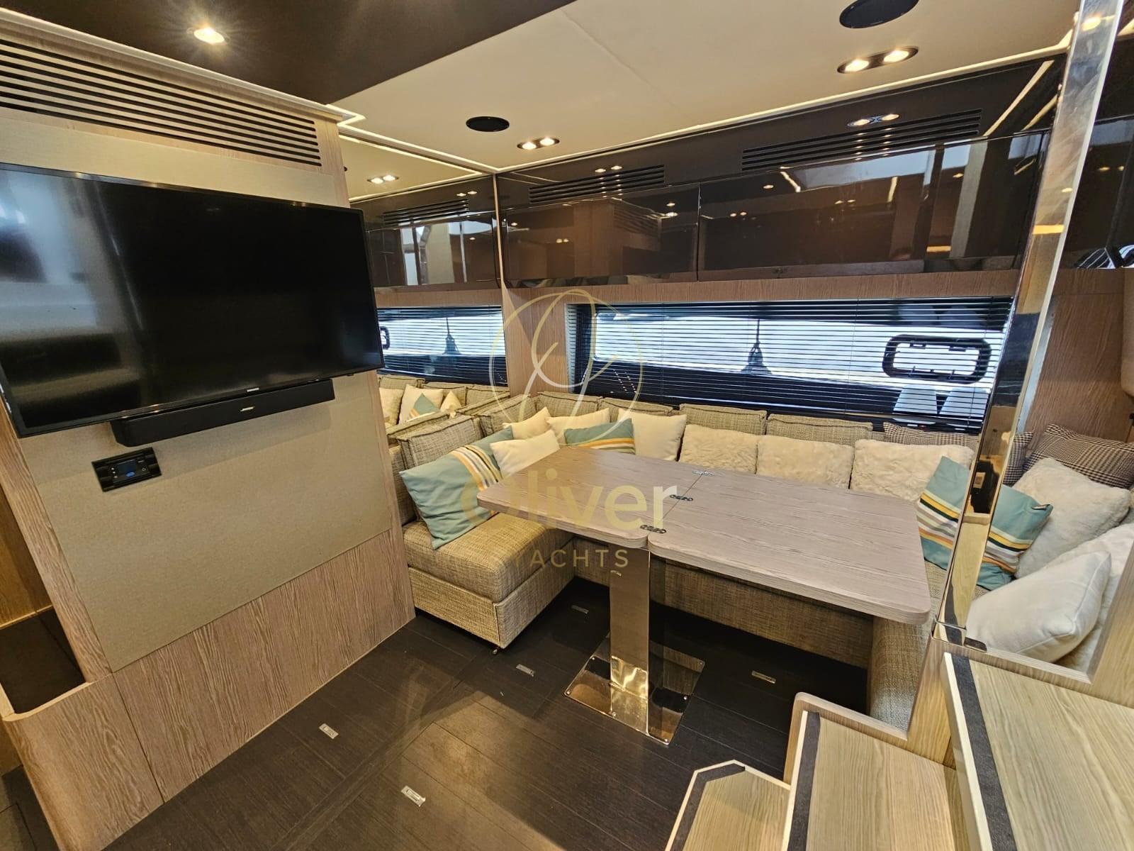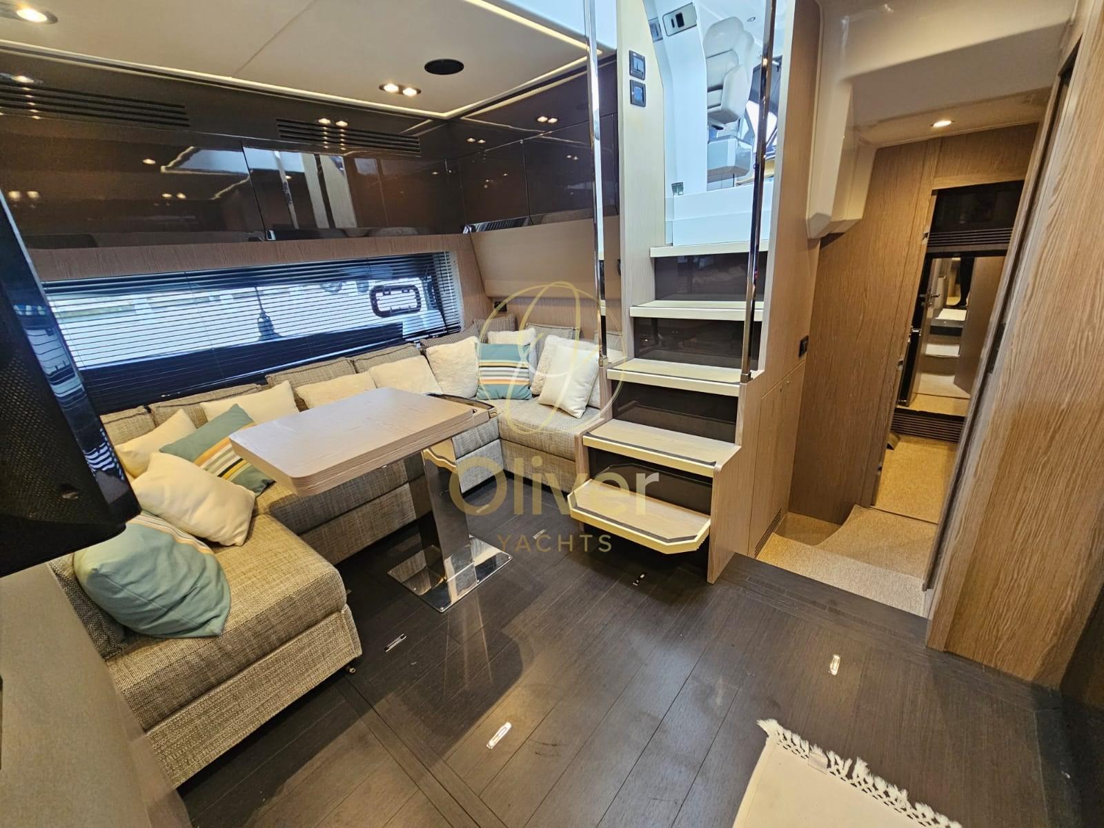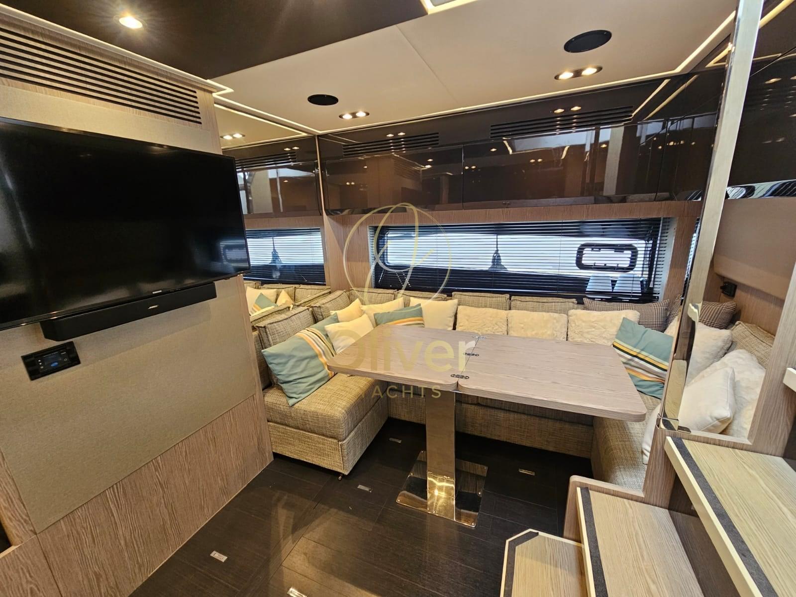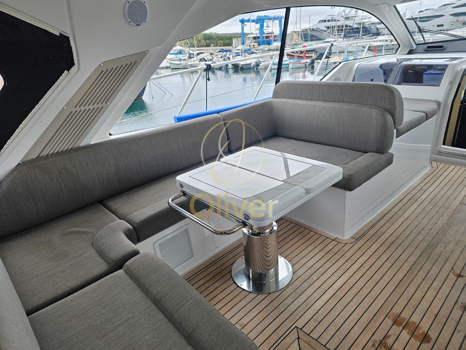 Engine Alarm, Bilge Alarm, Water pressure pump, 8 Batteries, Deck Shower, Hard top, Gangway, Platform (affondabile), Automatic Bilge Pump, Teak Cockpit, Shorepower connector, Water harbor connector system, Electric Windlass, swimming ladder, cockpit table, Stern Winches.