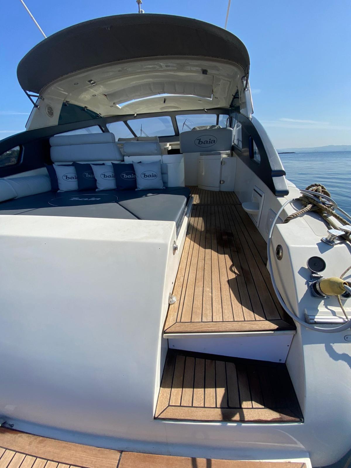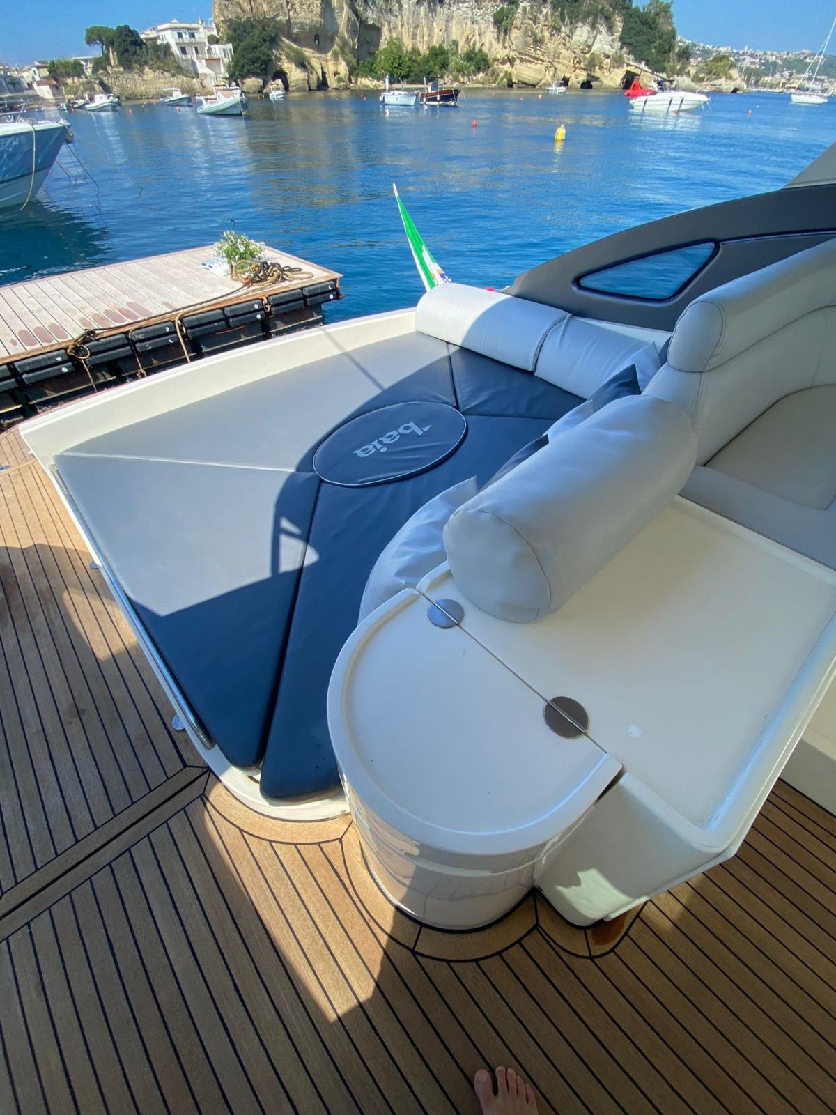 Engine Alarm, Bilge Alarm, Electric Engine Compartment Opening, Water pressure pump, Battery charger (NUOVO), Deck Shower, Hydraulic Flaps, Hard top (SOFT TOP), Fire Extinguishing System, Flaps Indicators, Washbasin in the cockpit, Courtesy Lights, Gangway, Platform (ALLUNGATO), Automatic Bilge Pump, Teak Cockpit, Shorepower connector, Water harbor connector system, Voltage Rectifier, Electric Windlass, swimming ladder, Waste Water Purifier System, cockpit table, Living Room Foldable Table, Tender, Horn, Bow Winches.