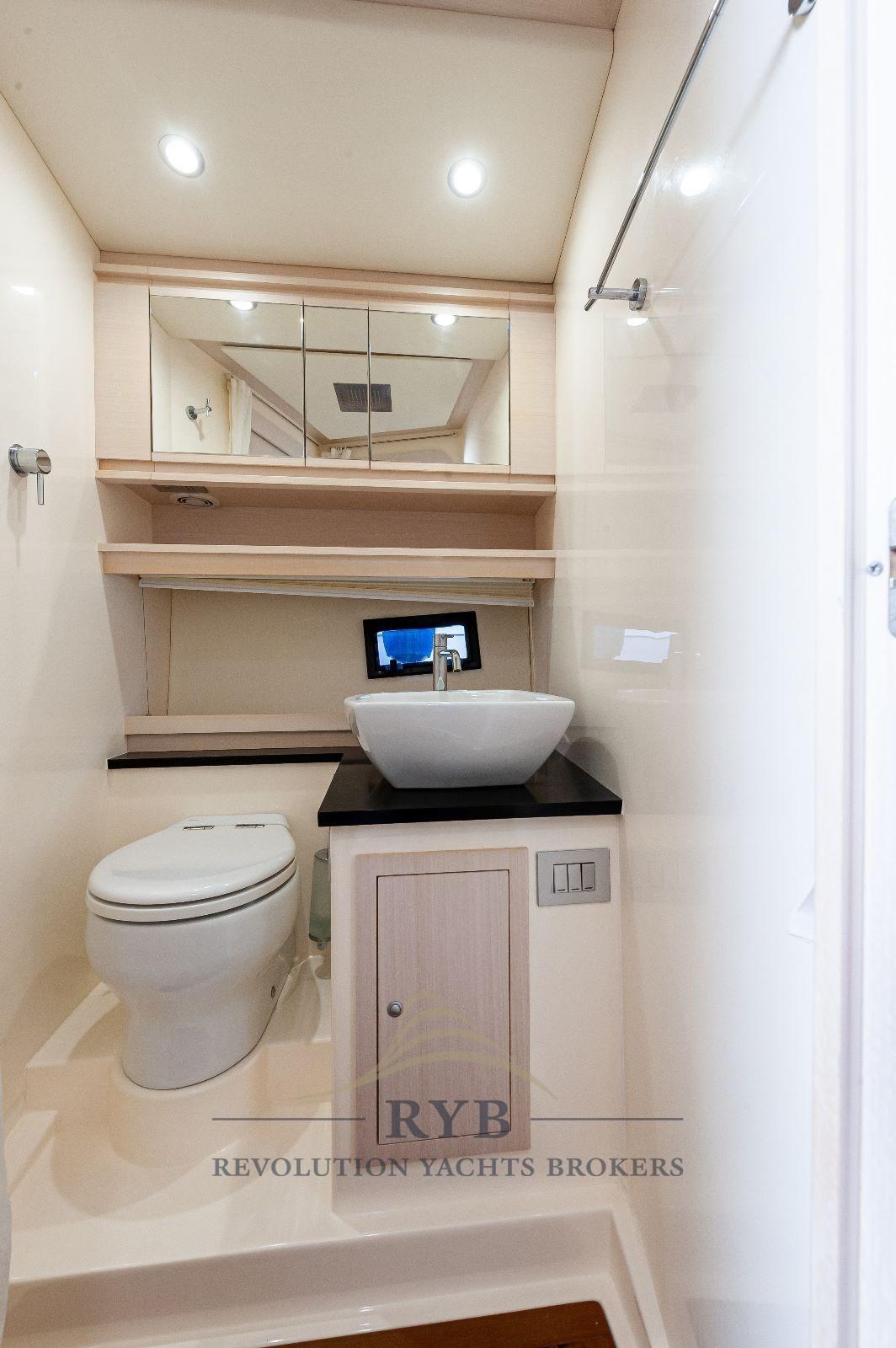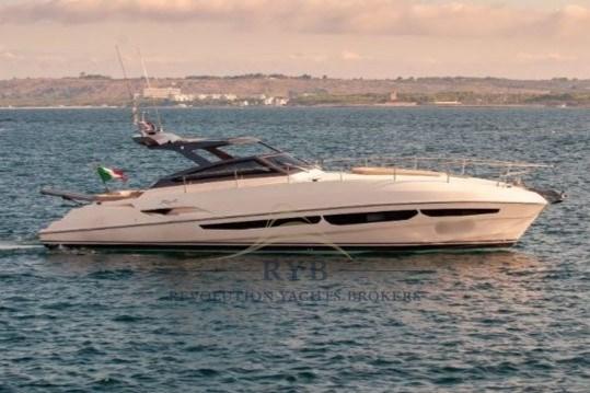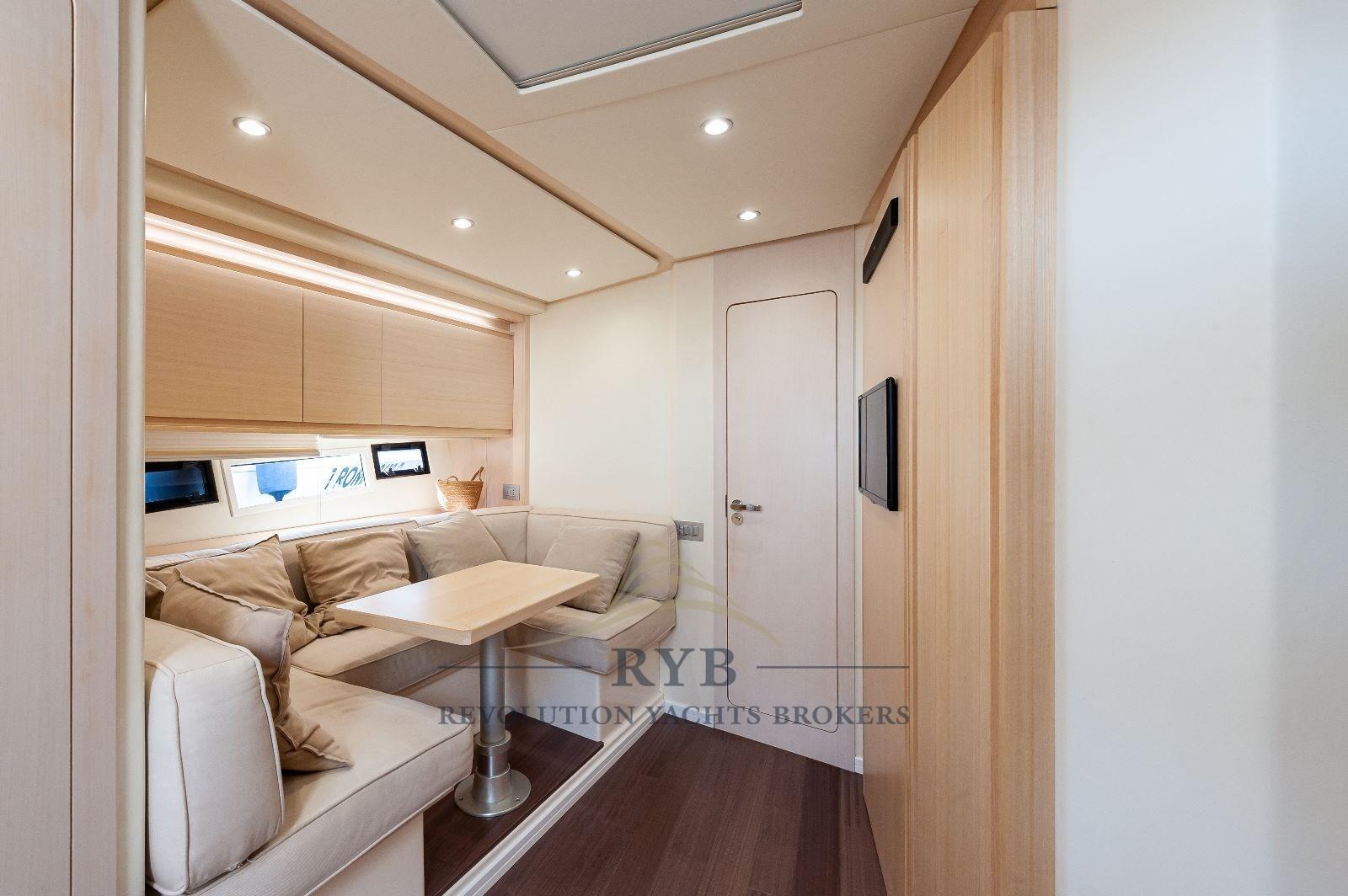 Engine Alarm, Bilge Alarm, Electric Engine Compartment Opening, Auto Dynamic Trim Interceptor, Water pressure pump, Deck Shower, Headlights fixed on the stem, Hard top, Flaps Indicators, Washbasin in the cockpit, Courtesy Lights, Underwater lights, Gangway, Platform, Automatic Bilge Pump, Manual Bilge Pump, Teak Cockpit, Shorepower connector, Electric Windlass, swimming ladder, cockpit table, Living Room Foldable Table, Horn, T-Top.