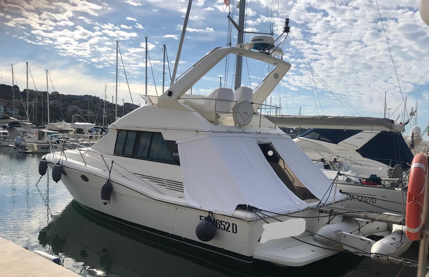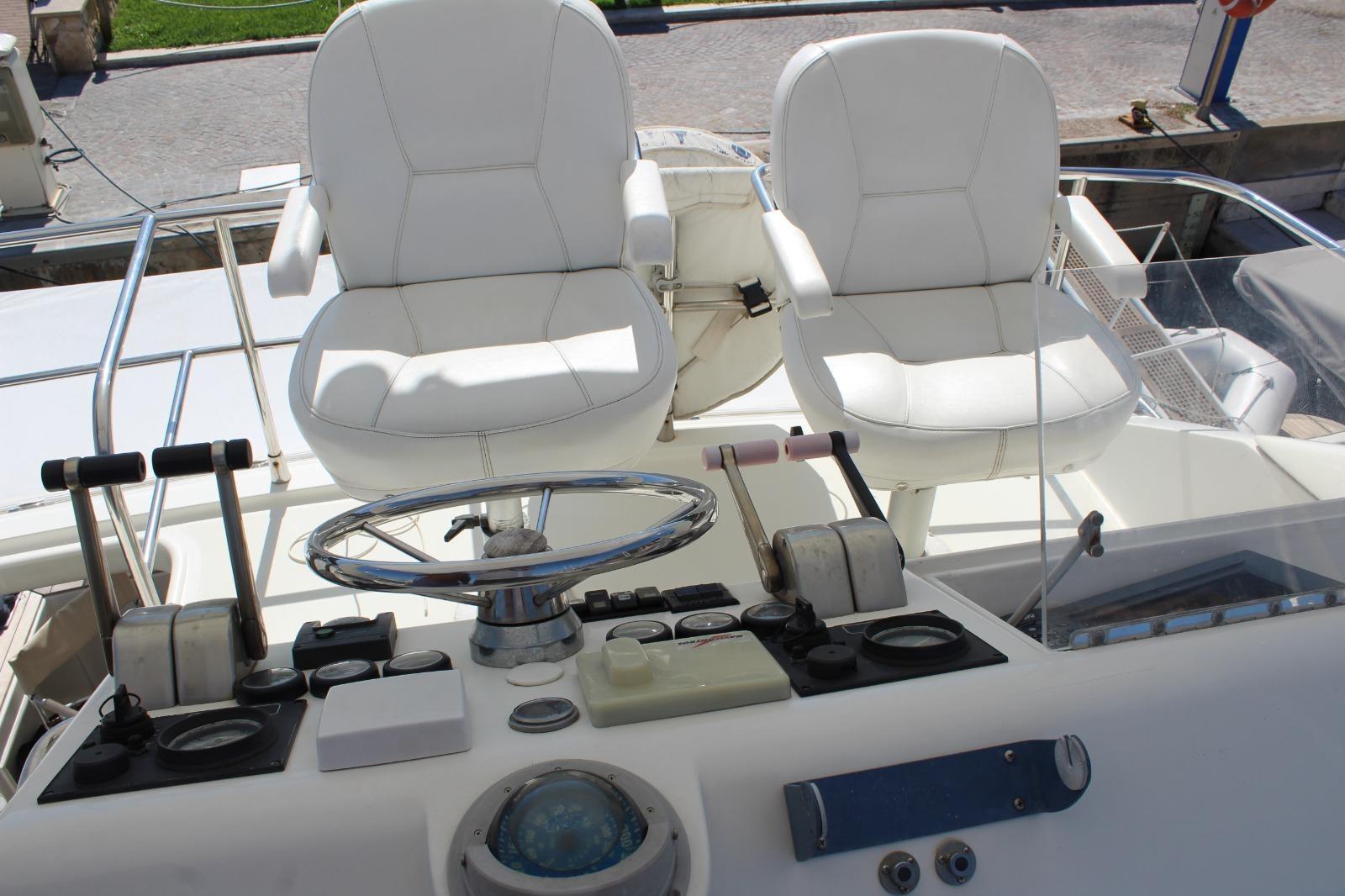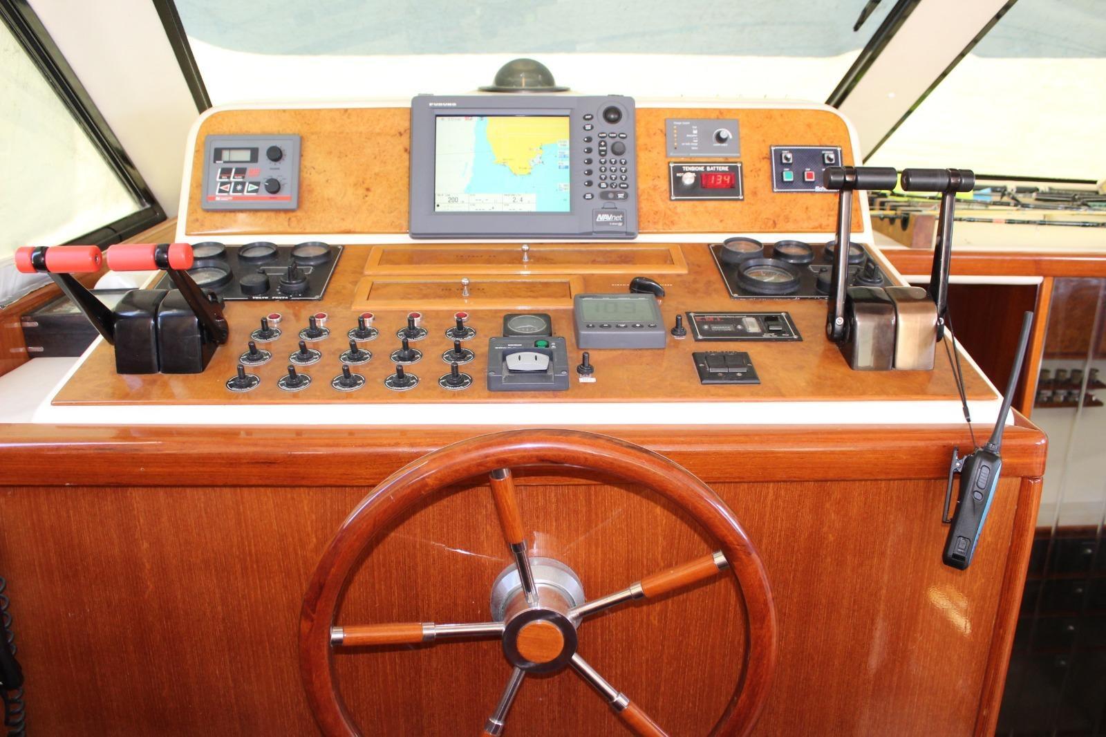 Engine Alarm, Water pressure pump, Deck Shower, Directional Spotlight, Hydraulic Flaps, Flaps Indicators, Gangway, Platform, Manual Bilge Pump, Entry door, Shorepower connector, Water harbor connector system, Voltage Rectifier, Rollbar, Electric Windlass (nuovo), swimming ladder, Tender (+ Honda 6 cv), Horn.