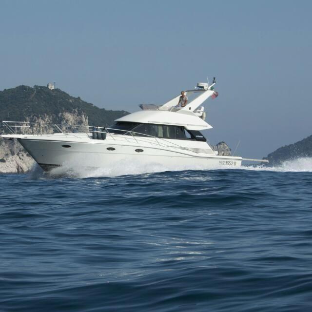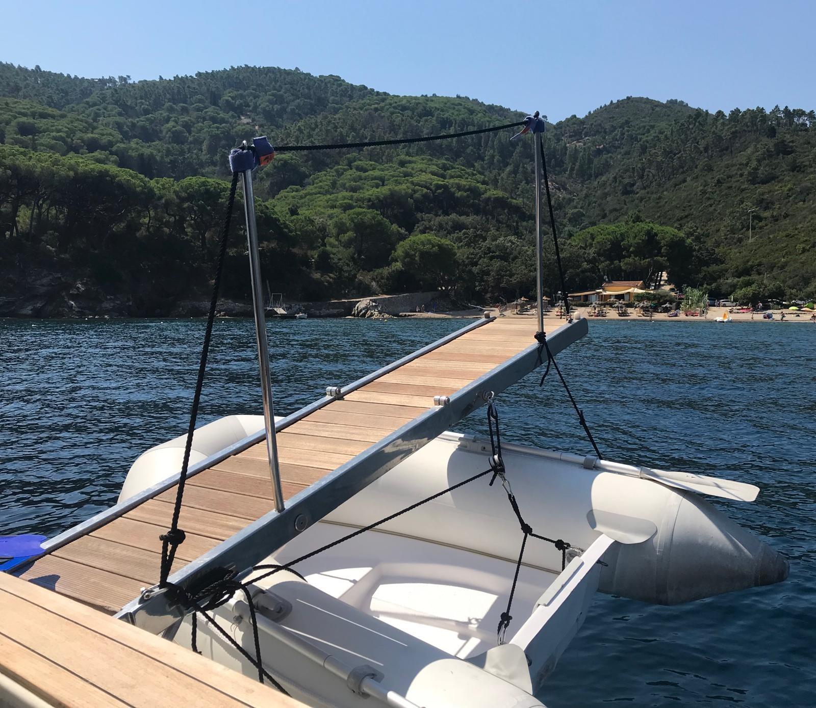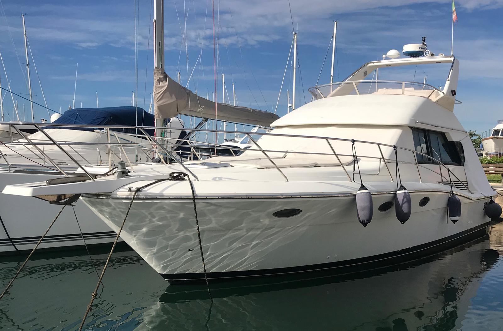 Engine Alarm, Water pressure pump, Deck Shower, Directional Spotlight, Hydraulic Flaps, Flaps Indicators, Gangway, Platform, Manual Bilge Pump, Entry door, Shorepower connector, Water harbor connector system, Voltage Rectifier, Rollbar, Electric Windlass (nuovo), swimming ladder, Tender (+ Honda 6 cv), Horn.