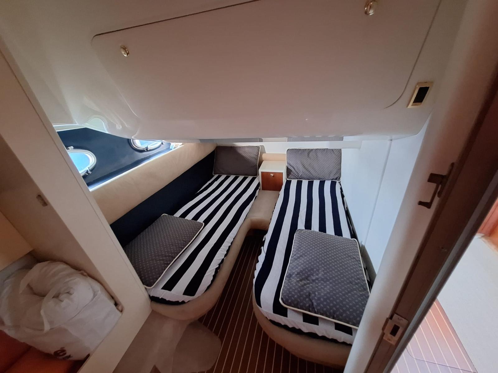 Engine Alarm, Bilge Alarm, Water pressure pump, 4 Batteries, Battery charger (2024), Deck Shower, Directional Spotlight, 2 Hydraulic Flaps, Fire Extinguishing System, Flaps Indicators, Courtesy Lights, Underwater lights, Gangway (Idraulica), Platform, Automatic Bilge Pump, Manual Bilge Pump, Teak Cockpit, Shorepower connector, Water harbor connector system, Voltage Rectifier, Rollbar, Electric Windlass, swimming ladder, Waste Water Purifier System, Horn, Stern Winches.