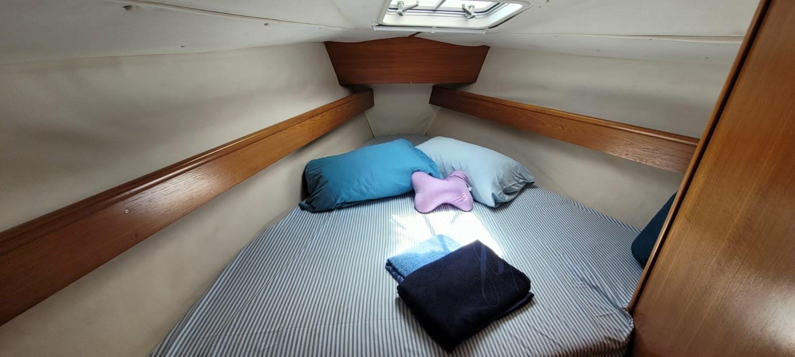 Reverse gear 2024- raiser 2024- halyard + sheets 2022 -rudder 2022 + aluminum gangway + 3hp mercury outboard + tender + cockpit cushions-