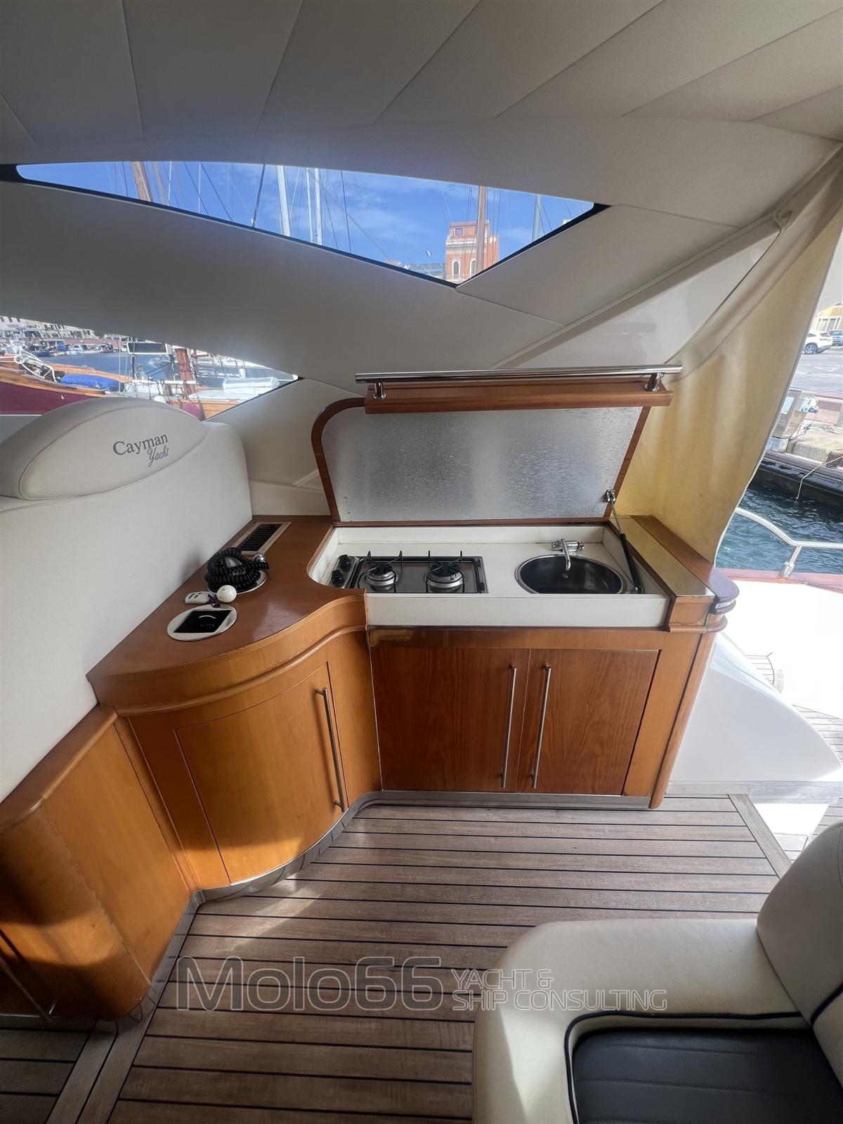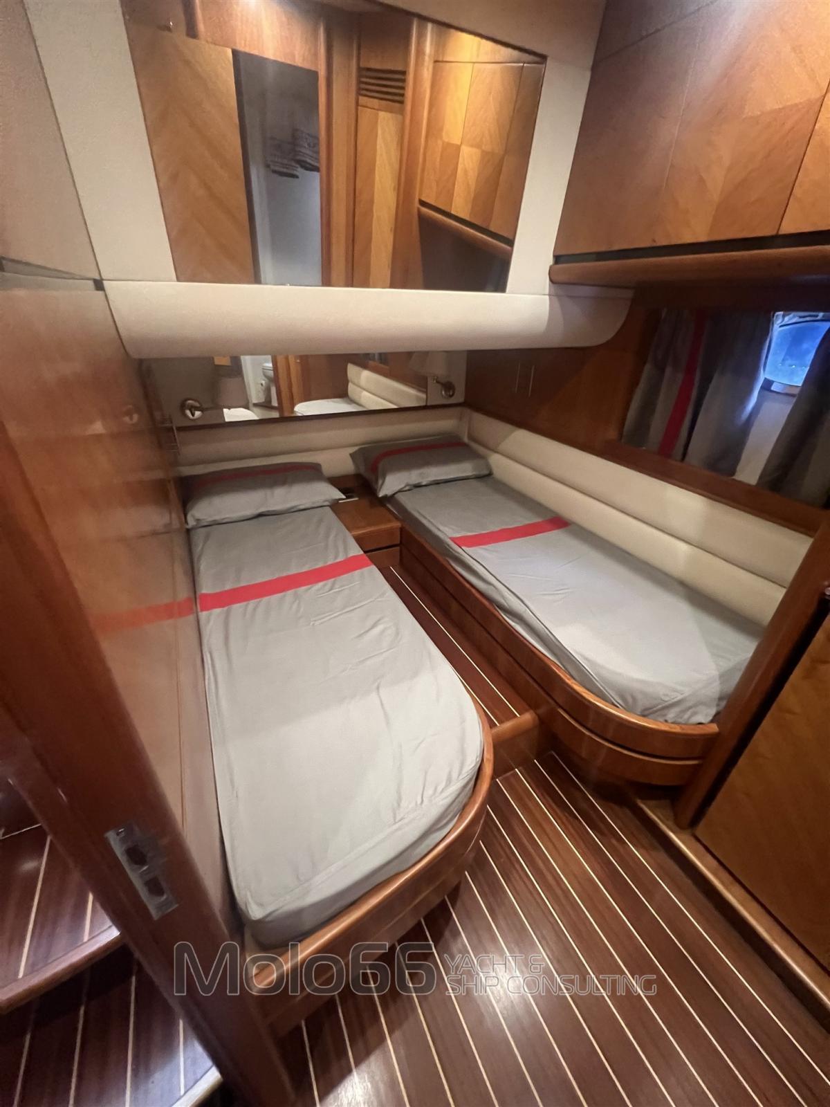 Engine Alarm, Bilge Alarm, Water pressure pump, Special Colour, Deck Shower, Directional Spotlight, Hydraulic Flaps, Hard top, Fire Extinguishing System, Flaps Indicators, Washbasin in the cockpit, Courtesy Lights, Gangway, Platform, Automatic Bilge Pump, Manual Bilge Pump, Teak Cockpit, Shorepower connector, Voltage Rectifier, Electric Windlass, swimming ladder, Saddles for tender, cockpit table, Horn, 2 Winch.