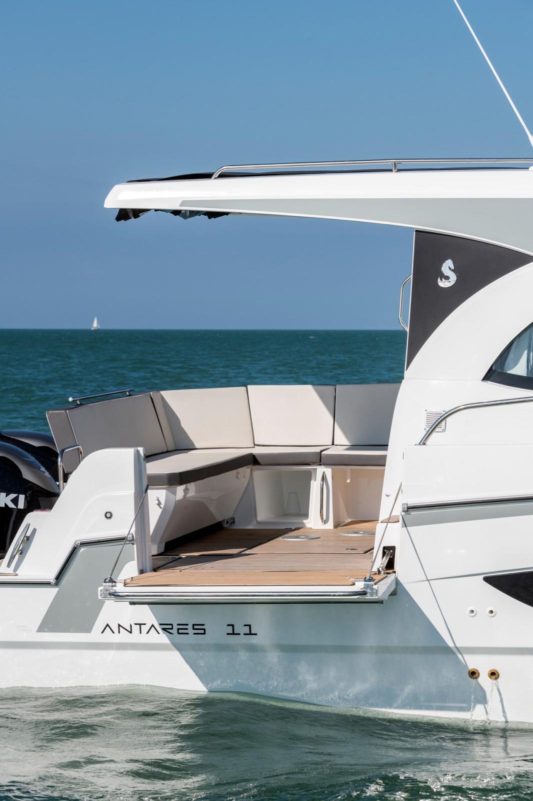Fume/Gas Detector, Engine Alarm, Water pressure pump, Deck Shower, Electric Flaps, Hard top, Flaps Indicators, Courtesy Lights, Fenders, Platform, Automatic Bilge Pump, Manual Bilge Pump, Side door, Teak Cockpit, Shorepower connector, Electric Windlass, swimming ladder, cockpit table, Horn.