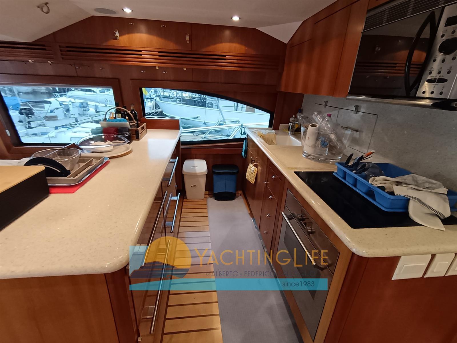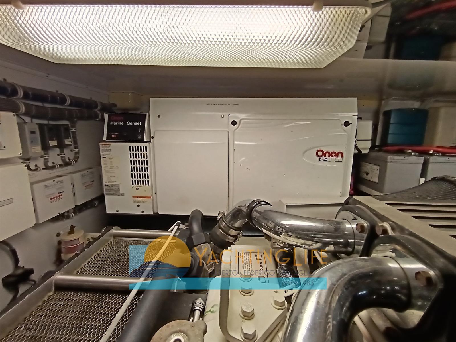 Fume/Gas Detector, Engine Alarm, Bilge Alarm, Water pressure pump, Deck Shower, Headlights fixed on the stem, Hydraulic Flaps, Hard top, Flaps Indicators, Washbasin in the cockpit, Courtesy Lights, Gangway, Platform, Automatic Bilge Pump, Manual Bilge Pump, Entry door, Shorepower connector, Water harbor connector system, Electric Windlass, swimming ladder.