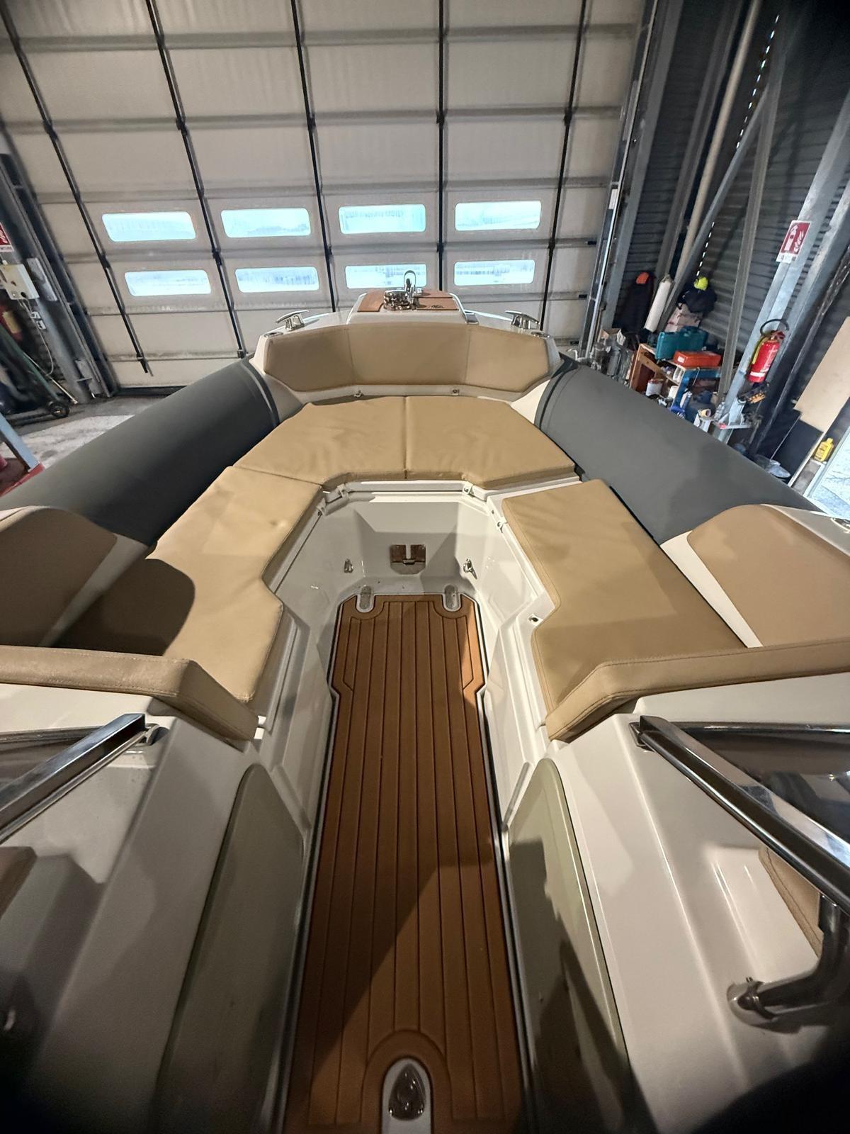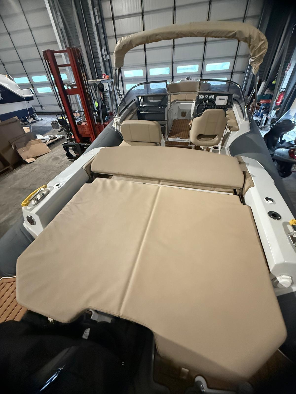 It is equipped with a new hull, very soft in all sailing conditions and we have further perfected the profile of the tubulars, increasing the aft sections to give greater stability when stationary and redesigning the bow to give greater interior habitability.