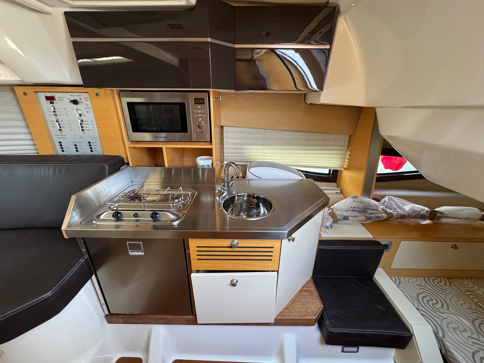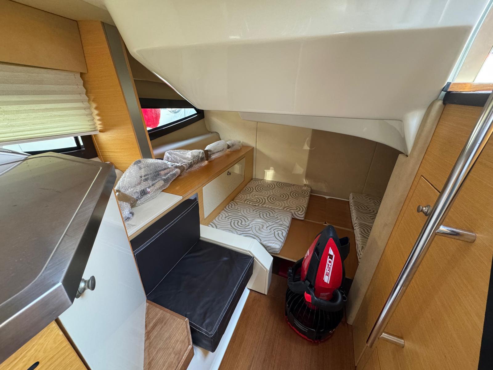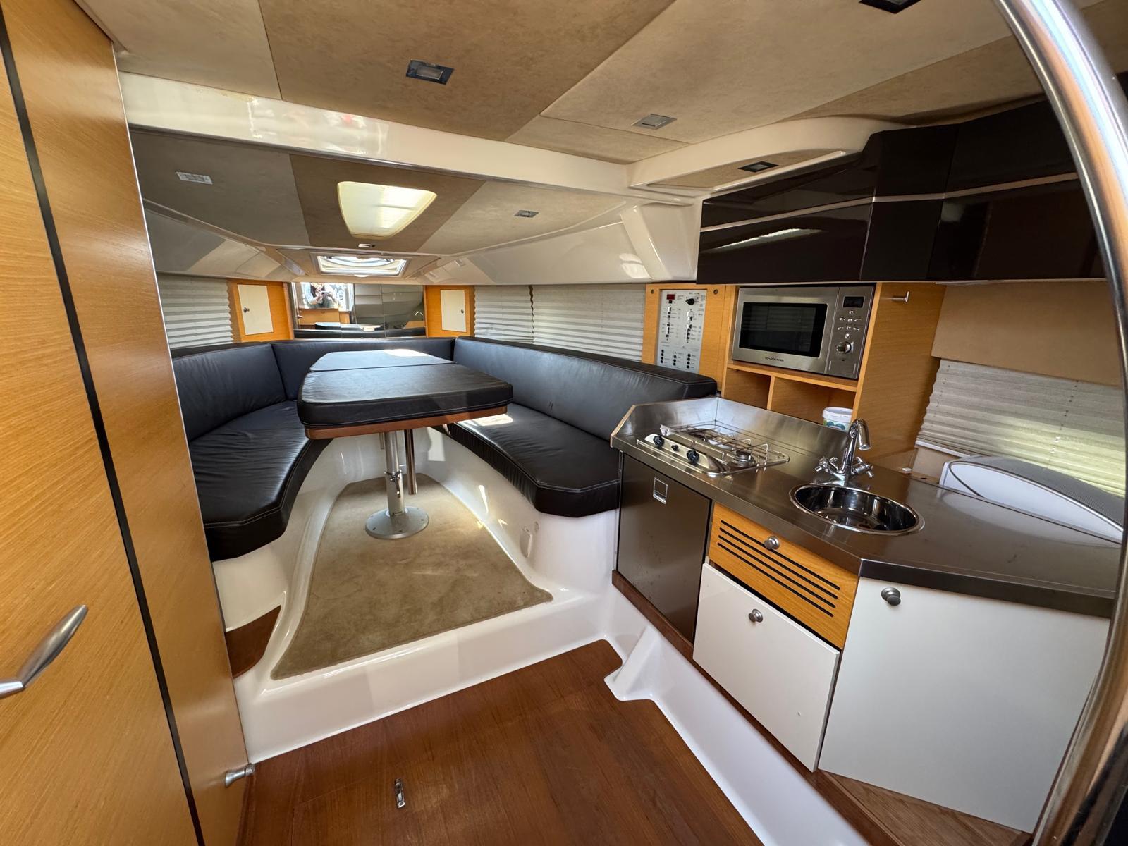 At 10.25 metres long, she offers an excellent compromise between comfort, manoeuvrability and power. Powered by two Volvo Penta engines, she guarantees dynamic and reliable cruising.