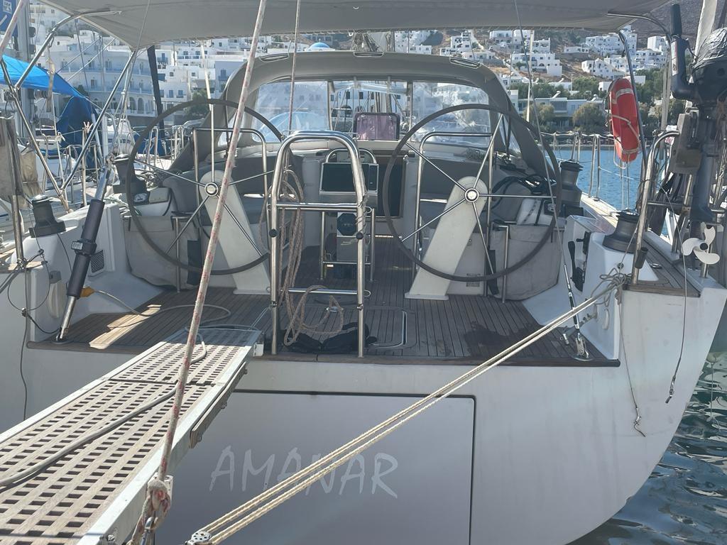 Engine Alarm, Anchor (con catena inox 80 mt), Water pressure pump, 4 Batteries (Batterie AGM 2021), Teak Side Decks, Special Colour (grigio perla), Deck Shower, Bow Thruster (con 4 batterie a prua dedicate), Solar panels (Solbian), Gangway, Platform, Manual Bilge Pump, Teak Cockpit, Shorepower connector, Water harbor connector system, Voltage Rectifier, Electronic instrumentation repeater, Electric Windlass, Strand rigging (sostituito nel 2022), swimming ladder, Waste Water Purifier System, Outboard Engine Support Bracket, cockpit table, Living Room Foldable Table, Tender (2,70 m + fuoribordo honda 2,3), Teak Deckhouse, 3 Winch Hydraulic.