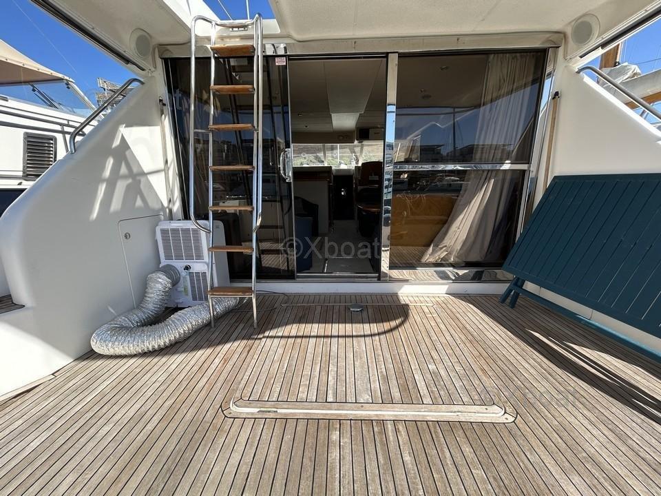 The Princess 500 is also equipped with numerous deck equipment, including a hydraulic gangway, booms, an electric windlass, and a cockpit awning. The cockpit is in teak, adding a touch of elegance and comfort.