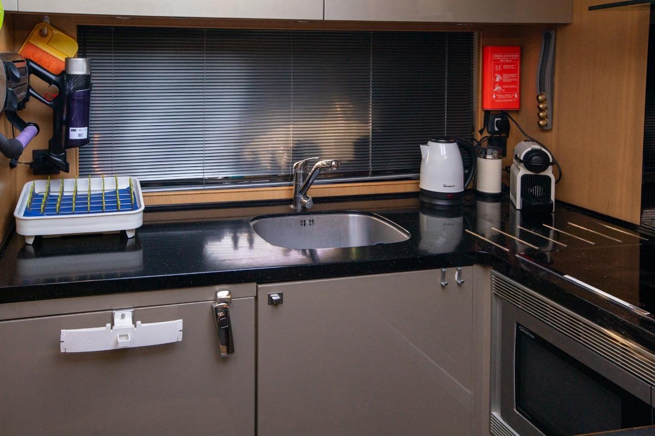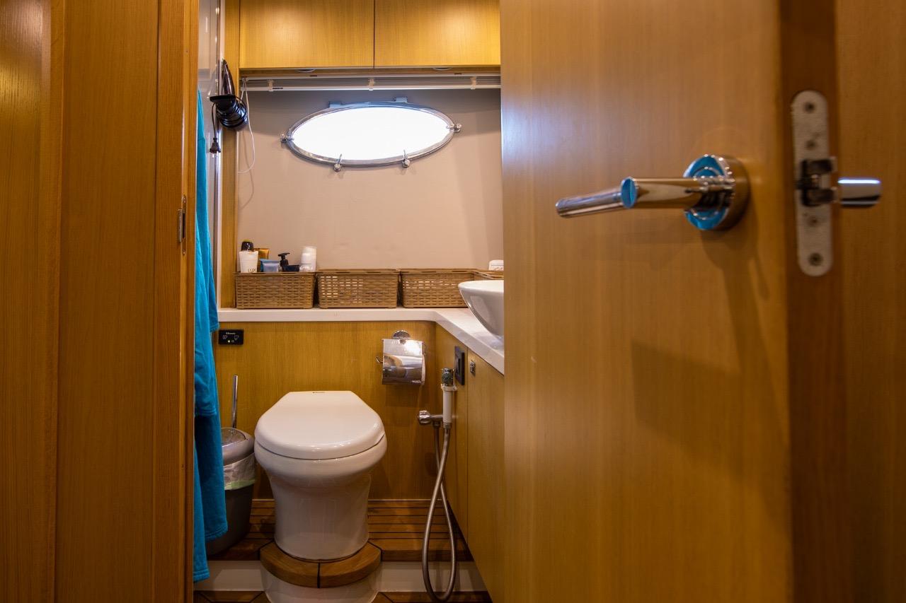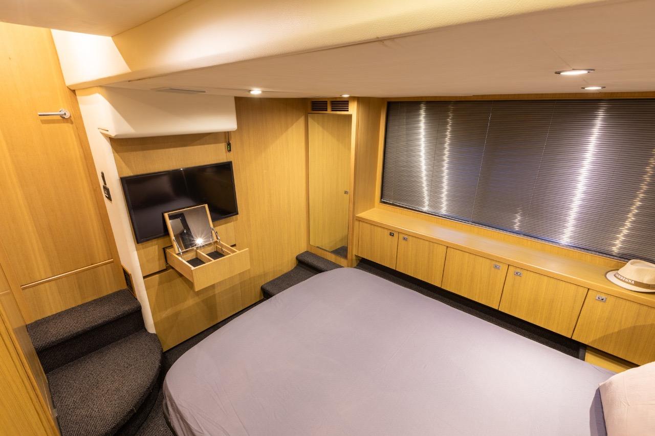 The sleeping area offers comfort worthy of much larger yachts, including a spacious, full-beam master cabin, bathed in light thanks to large side windows, and featuring an en-suite bathroom. The forward VIP cabin also benefits from its own bathroom with a separate shower. Also features a crew cabin.