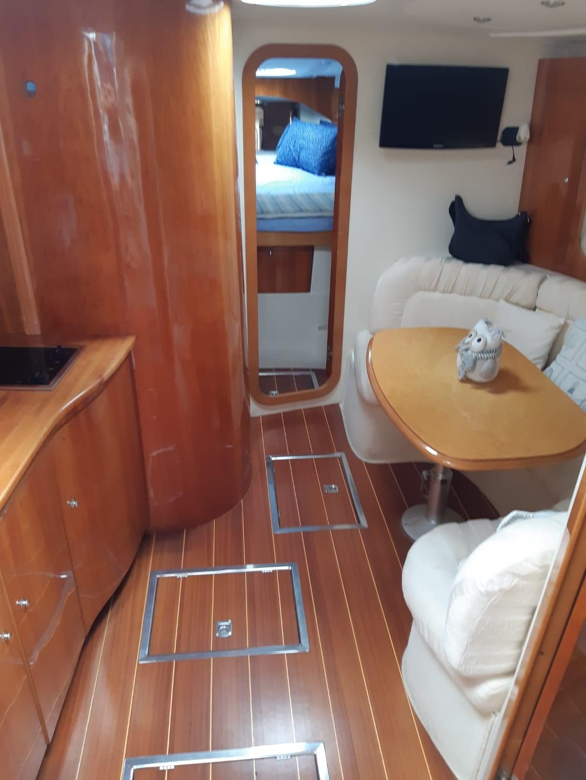 Engine Alarm, Water pressure pump, 4 Batteries, Deck Shower, Directional Spotlight, Hydraulic Flaps, Fire Extinguishing System, Flaps Indicators, Anchor Chain Washdown, Courtesy Lights, Underwater lights, Gangway (Idraulica), Platform, Manual Bilge Pump, Teak Cockpit, Shorepower connector, Voltage Rectifier, Rollbar, Electric Windlass, swimming ladder, cockpit table, Horn.