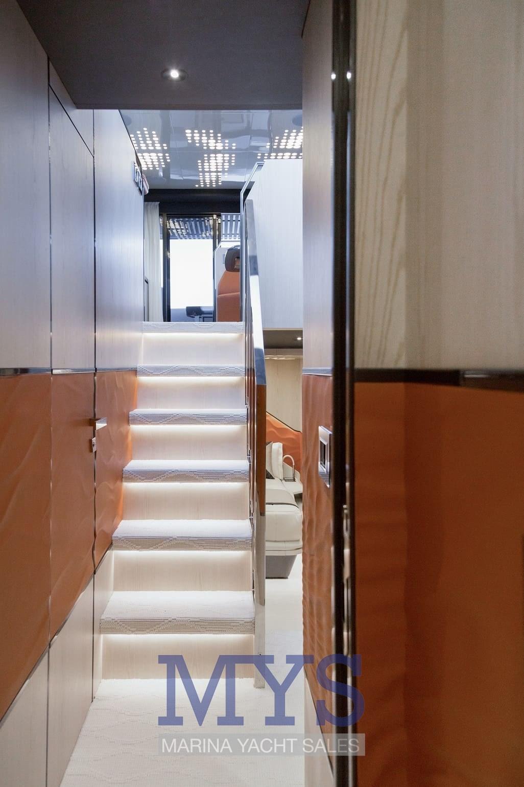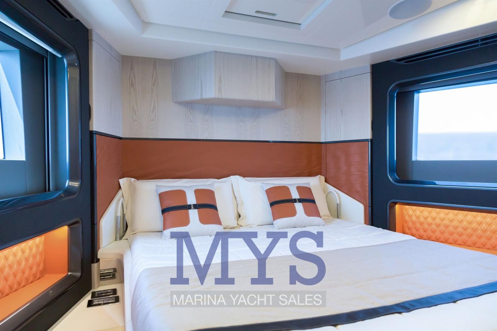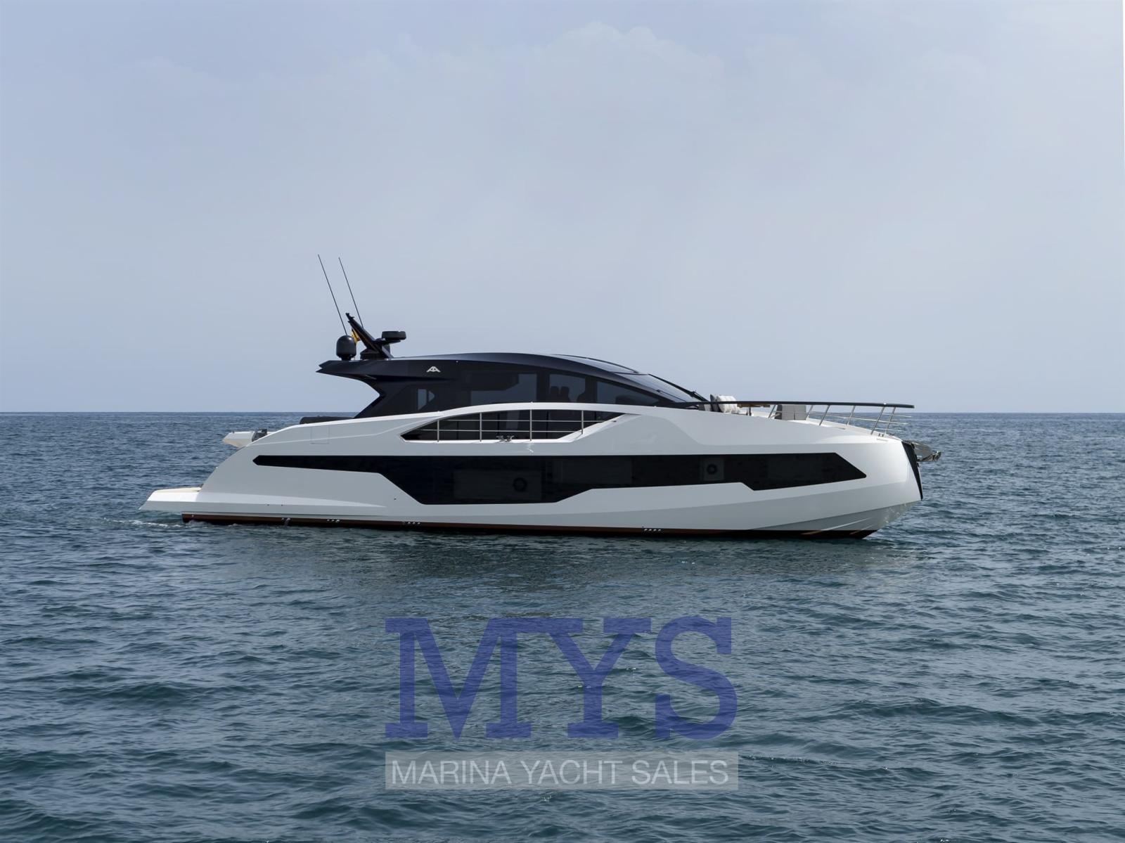 The 677 Coupé defies the standards of its segment, with its 18.94 meters in length, and stands out for its clean and sporty lines that flow throughout the boat, creating a striking and provocative profile. Its inverted bow, a typical feature of the Coupé range, together with its large glass surfaces, blend with the lines of the boat, creating a unique silhouette that will capture the hearts of sports sailing lovers who do not want to give up luxury on board. These large windows stand out not only for their beauty, but also for the integration of the sea into life on board and, together with the retractable roof, will make the sailing experience on the 677 Coupé truly unique.