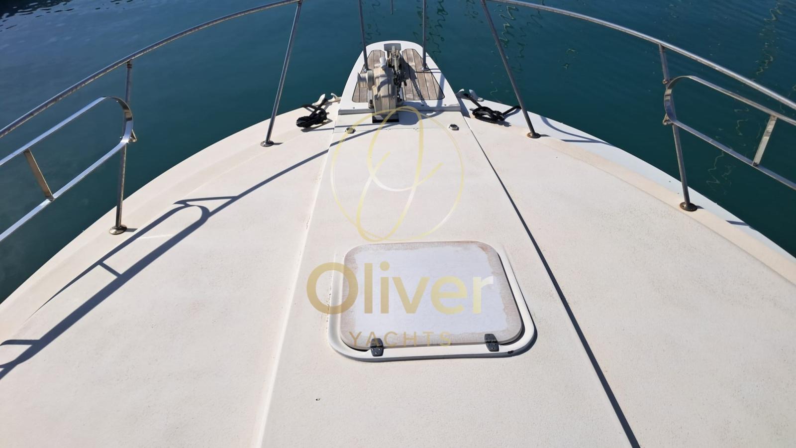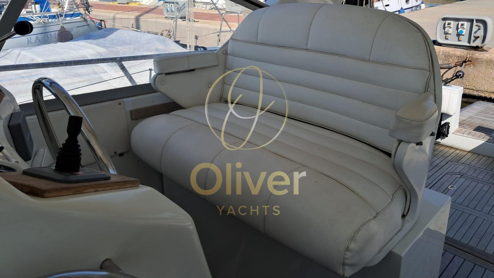 2 Engine Alarm (BUONO), 2 Alternator, Electric Engine Compartment Opening (BOTOLA), Water pressure pump, Life Raft (EUROVINIE 8 P), Deck Shower, Bow Thruster (QUICK), 2 Headlights fixed on the stem, Fixed Flaps (ACCIAIO), 2 Hydraulic Flaps (Bennet), 2 Fire Extinguishing System (ESTINTORI), Flaps Indicators, 2 Courtesy Lights, 2 Underwater lights (ACCIAIO), 2 Solar panels, Automatic Bilge Pump, 2 Electric Bilge Pump, Entry door (SCORREVOLE), Teak Cockpit (SEMINUOVO), Shorepower connector, Voltage Rectifier, Electric Windlass, swimming ladder (A SCOMPARSA), cockpit table (LEGNO), Horn.