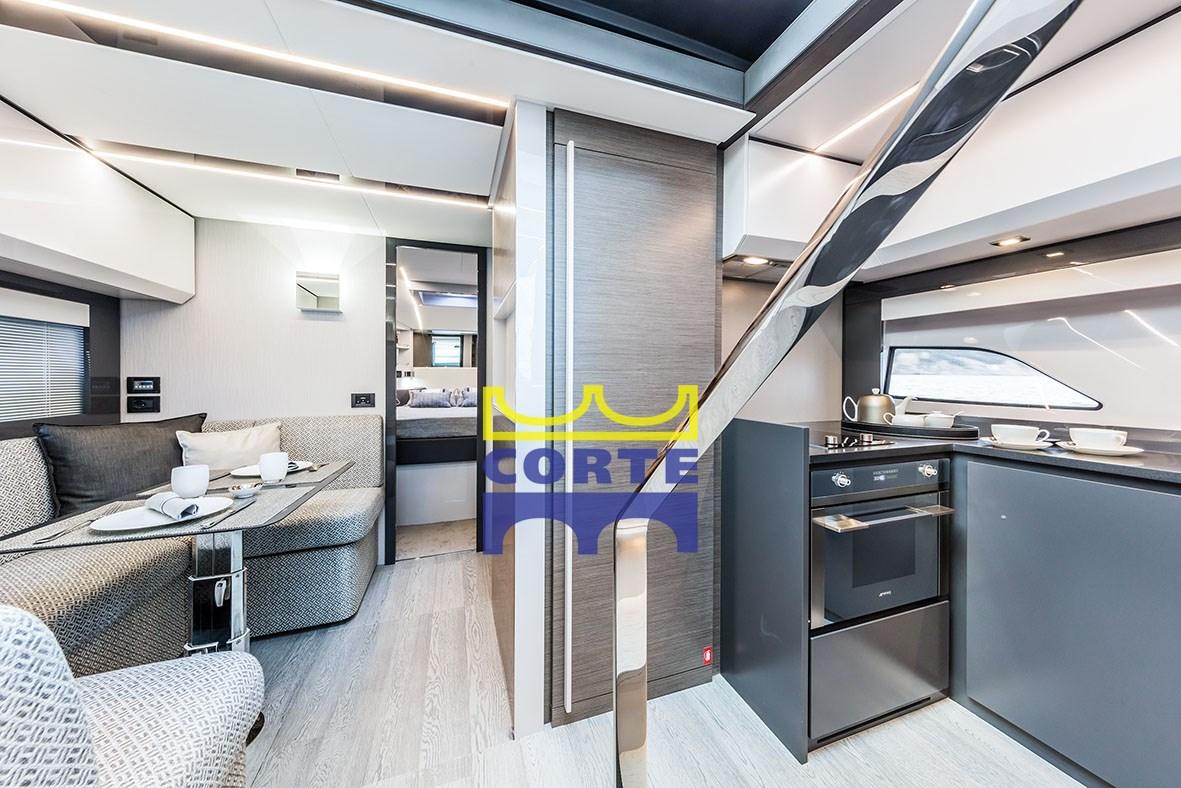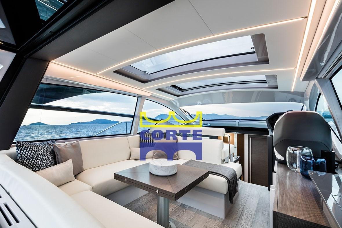 The cockpit is equipped with a large sundeck and a second sofa. The area can be separated or joined to the saloon thanks to a special opening and closing system of the glass door and the glass surface that divides these two areas.