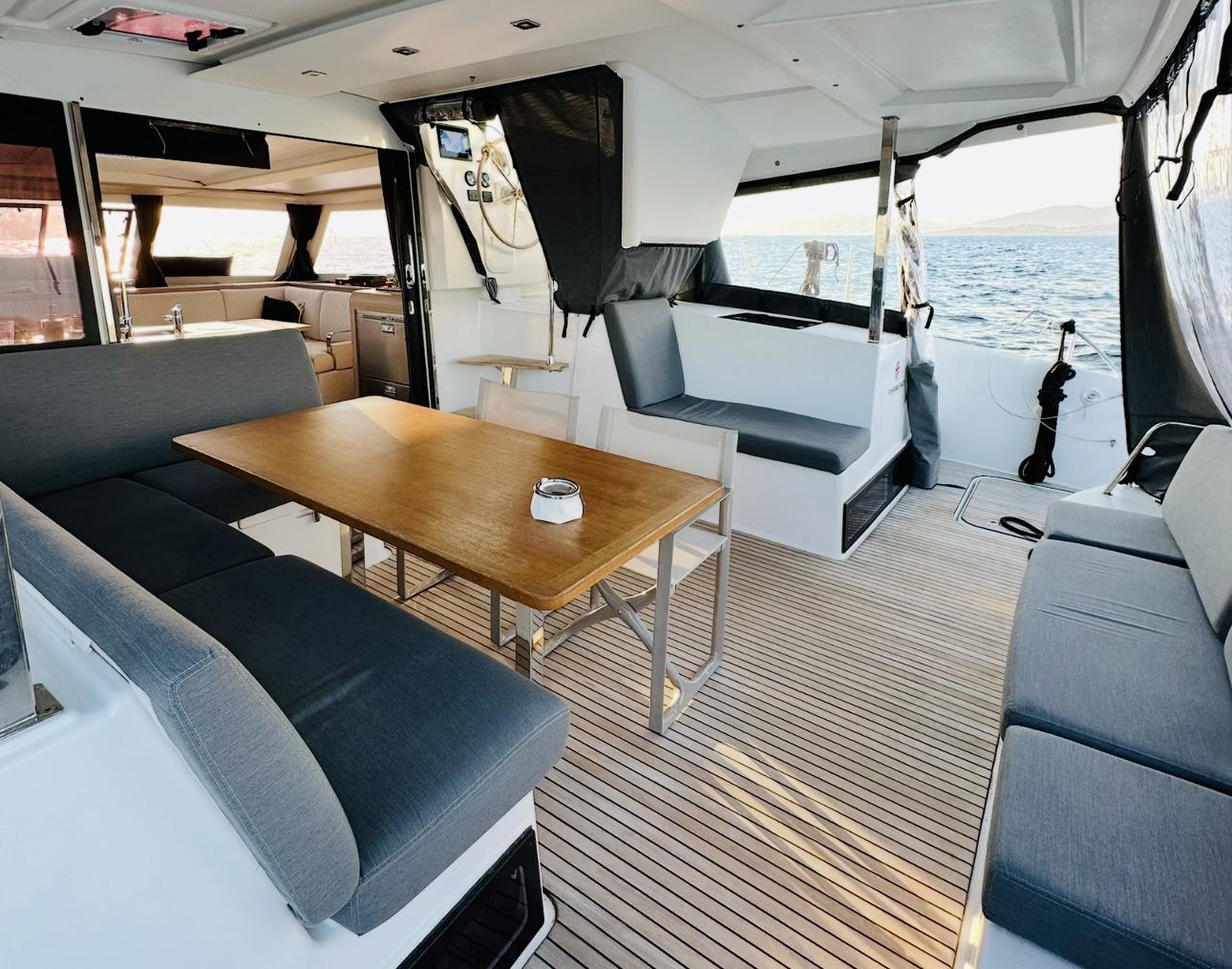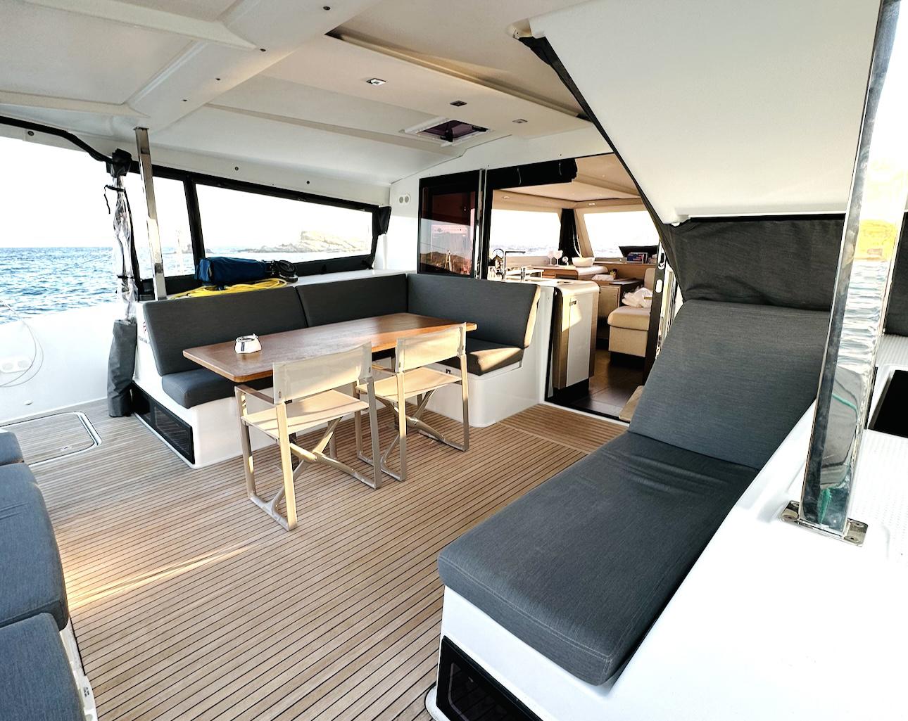- Outdoor cushions (cockpit + lounge deck)