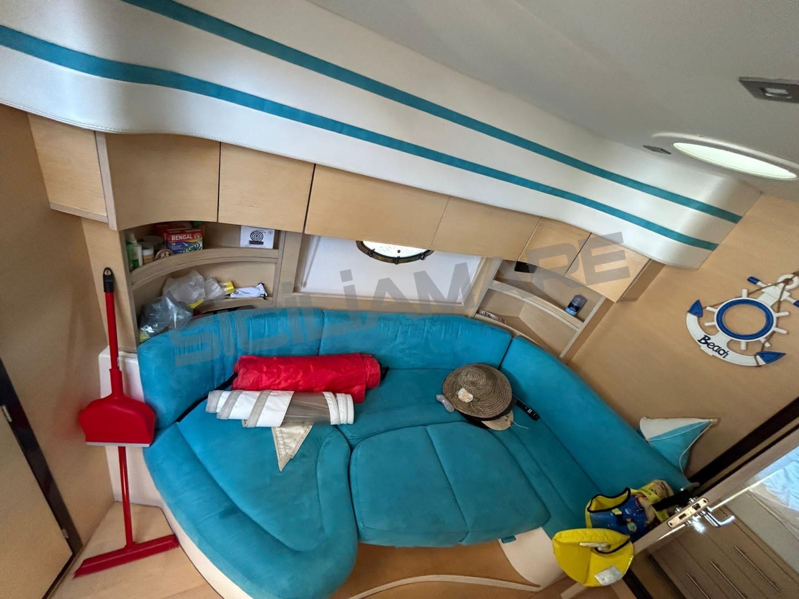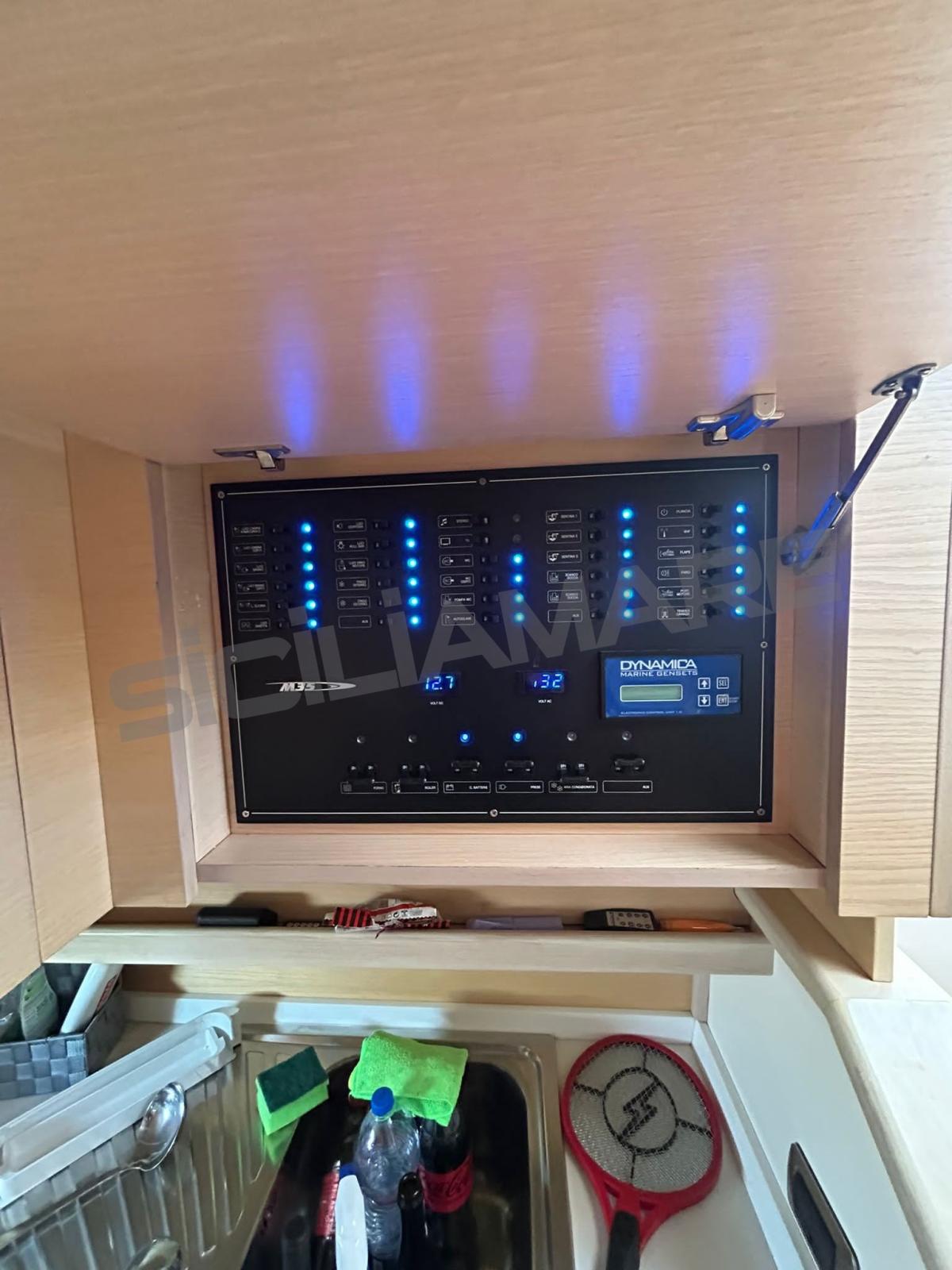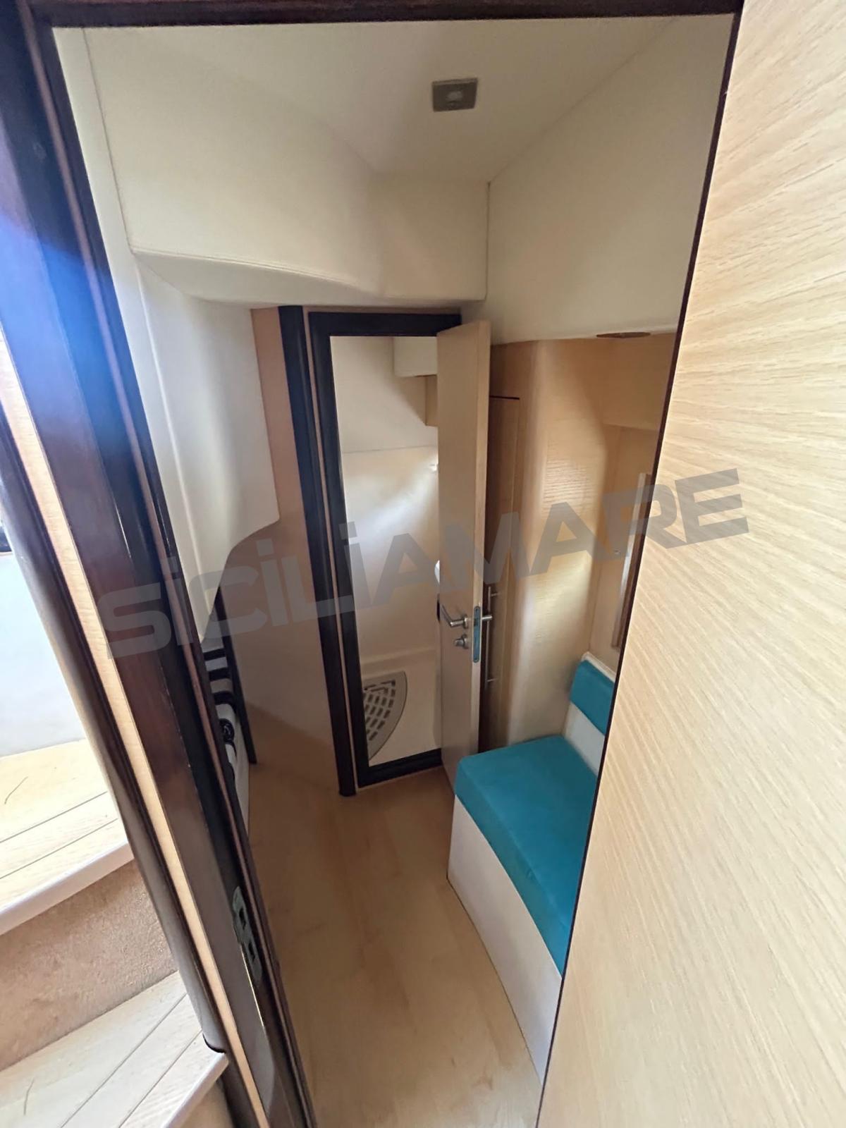 Engine Alarm, Water pressure pump, Deck Shower, Directional Spotlight, Electric Flaps, Hard top, Washbasin in the cockpit, Courtesy Lights, Underwater lights, Gangway (Idraulica a scomparsa), Platform, Teak Cockpit, Shorepower connector, Rollbar, Electric Windlass, swimming ladder, cockpit table, Living Room Foldable Table.