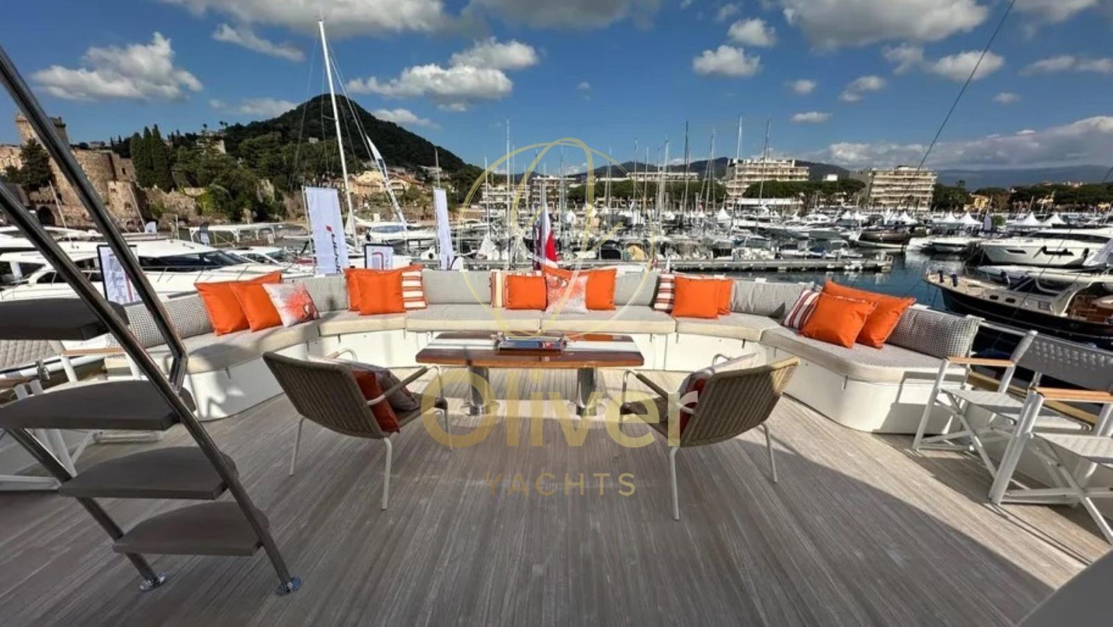 The Terranova T85 is a motor yacht with a timeless classic style, built in 2021 by the prestigious Italian shipyard Terranova Yachts. With an overall length of 26.10 meters and a width of 7.14 meters, it offers generous volumes, great stability and excellent livability both indoors and outdoors.