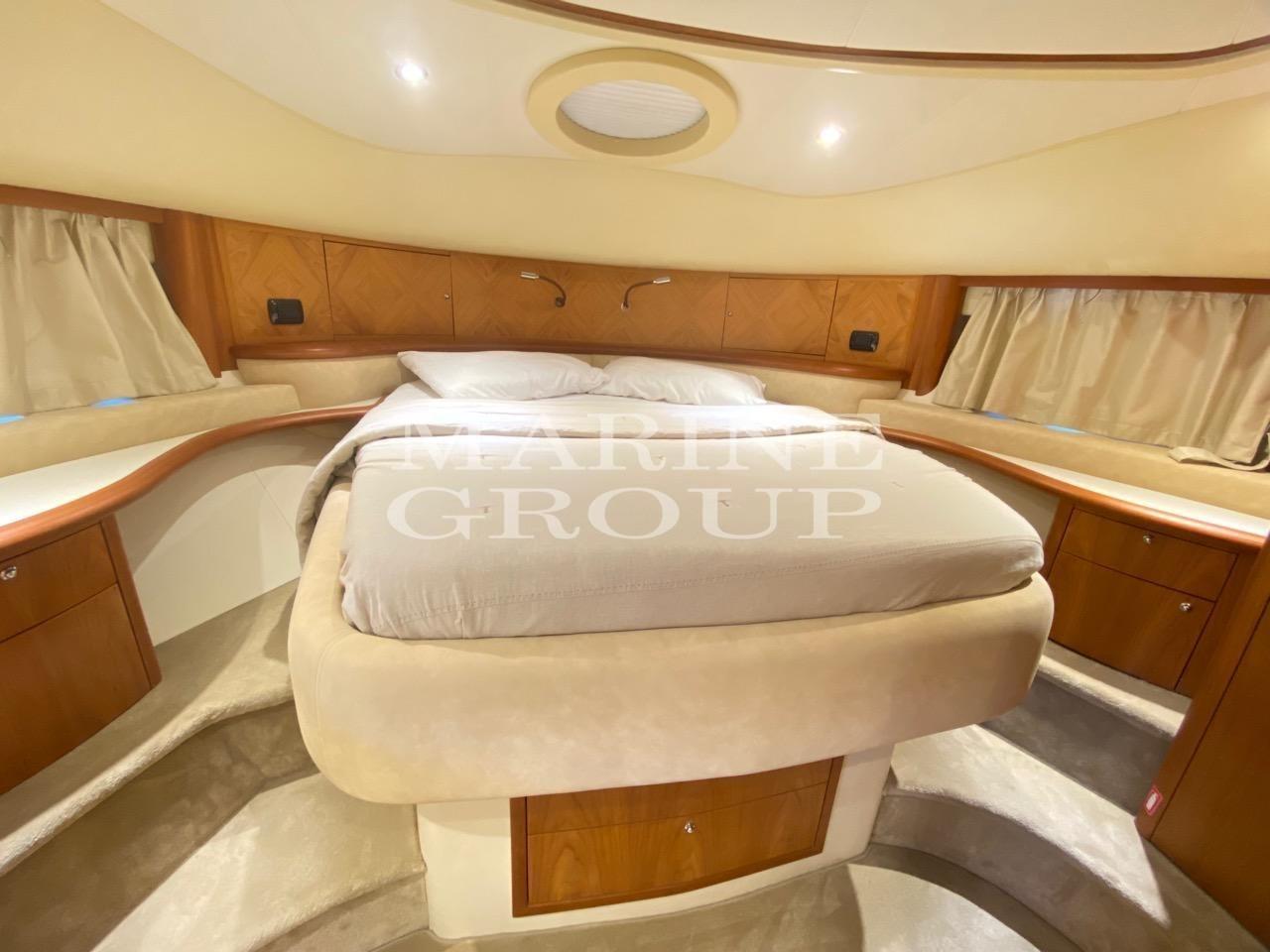 Interiors in cherry wood and carpet; Large light leather "U" shaped sofa with coffee table: Fully equipped kitchen, dining room with leather sofa; Full-beam amidships master cabin with private ensuite bathroom complete with shower cubicle and bidet; VIP cabin in the bow large and bright with private bathroom including shower cubicle; Guest cabin with two beds on the floor convertible into a double, third full bathroom; Sailor cabin aft with bathroom and independent entrance from the cockpit sofa seat.
