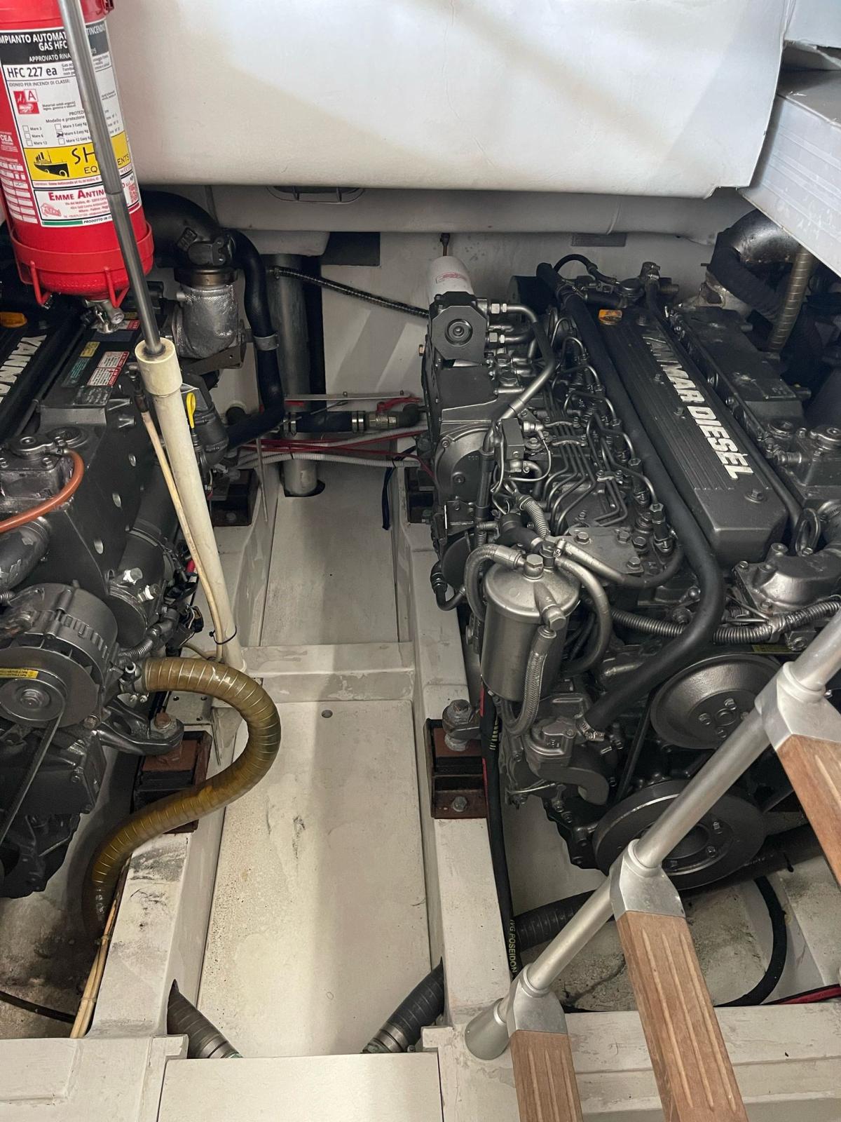 Fume/Gas Detector, Engine Alarm, Bilge Alarm, Electric Engine Compartment Opening, 5 Batteries, Deck Shower, Hydraulic Flaps, Gangway, Shorepower connector, Rollbar, Electric Windlass, cockpit table.