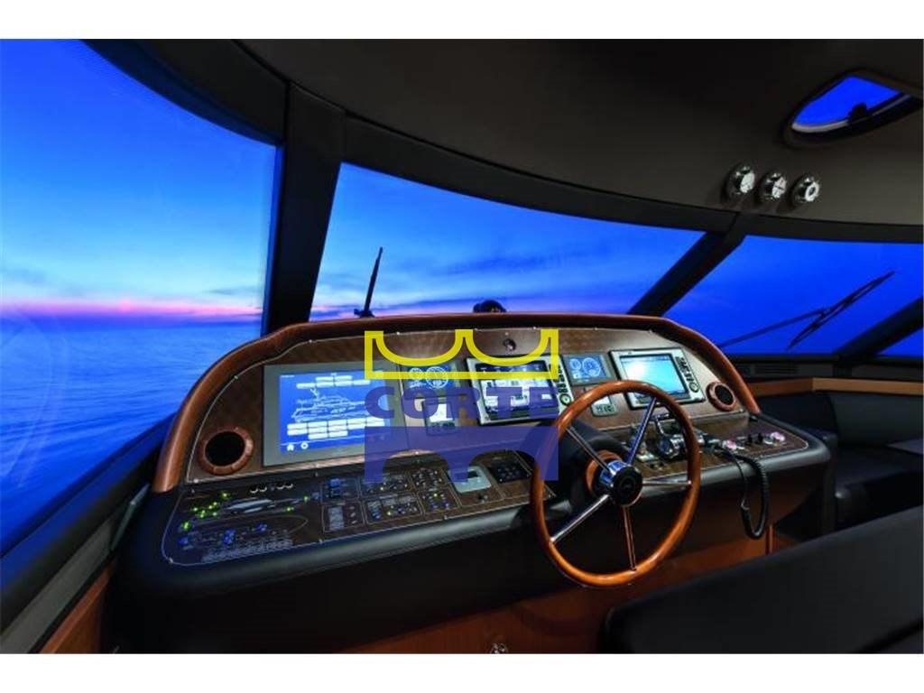 Engine Alarm, Bilge Alarm, Water pressure pump, 12 Batteries, Deck Shower, Twin Steering, Hydraulic Flaps, Tender Garage, Fire Extinguishing System, Flaps Indicators, Courtesy Lights, 2 Underwater lights (fari underwater), Gangway (elettroidraulica a scomparsa), Platform (poppa), Automatic Bilge Pump, Entry door, Side door (a movimentazione elettrica), Teak Cockpit, Shorepower connector, Water harbor connector system, Electric Windlass, swimming ladder, Stabilizers (antirollio Mitsubishi), cockpit table (trasformabile in prendisole), Tender (Surf Marine con motore fuoribordo 20 Hp), Horn, Stern Winches, Bow Winches.