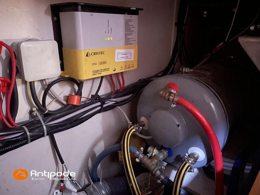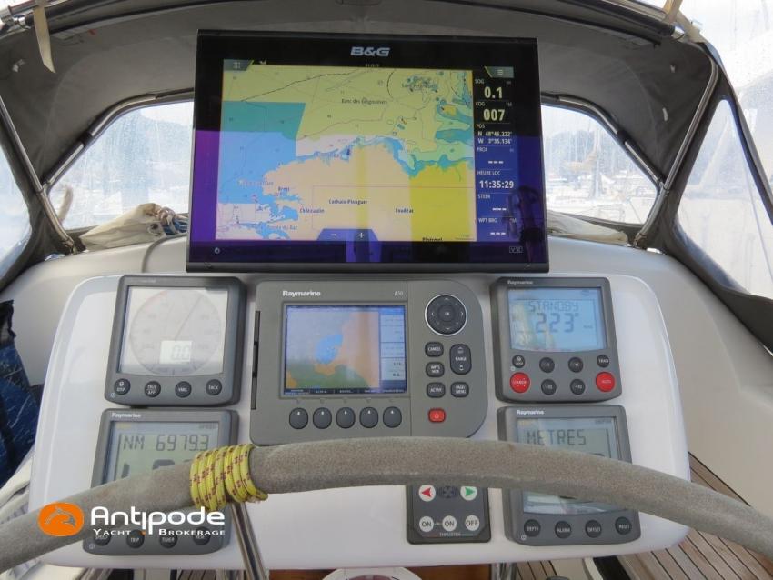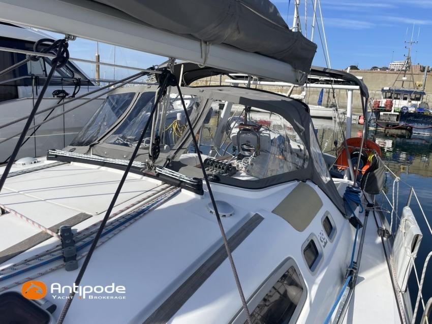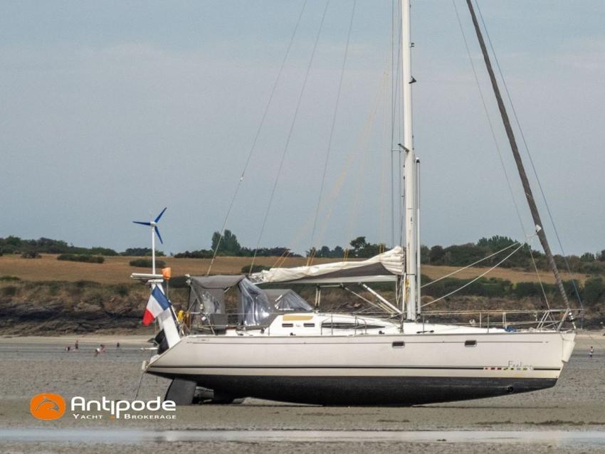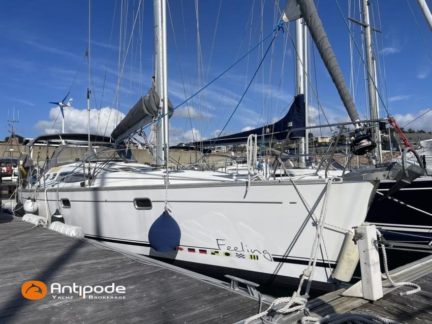 FEELING 39 DI, 2011, first hand, VOLVO D2-40, 40 hp (2254 hrs), Bow thruster, Interior layout version 1 forward cabin, 1 aft cabin, Large storage in starboard cockpit locker, 1 head (sink + shower), Separated wc, Saloon upholstery, Mosquitos screens and hatches covers, Extra mastress in fwd cabin, Corian kitchen worktop, Extra lockers in saloon, Electric manoeuvring winch handle - Modea (2016), Roof mounted main sheet traveller - Harken, Mainsail german sheet system, Stainless steal bowsprit (no sail available), Cockpit table (wood) with 2 folding leaves, Wheel cover (2017), Cockpit sprayhood (from 2014, serviced in 2025, new windows), Cockpit bimini top (from 2014, serviced in 2025), Electric windlass - Lofrans 1000W, Aluminium aft cockpit roll bar & davits, Opening life lines, Outboard engine bracket, Cap Horn sailing regulator, Full cockpit enclosure (can be in bimini top only) (from 2014, serviced by sailmaker in 2025), Full batten main sail and Selden tracks, Single line main sail reefing system, Main sail lazy bag, Main sail lazy jacks, Genoa roller furling with above deck drum - Furlex 300S, Triradial cut furling genoa, hydranet clothes (2020), Releasable baby-stay and hardware, Jib with reef for releasable baby stay & deck bag, Aluminium spinnaker pole (mast storage system), SPX 10 Raymarine in board autopilot & giroscopic compass, Autopilot remote control, Raymarine ST 60 navigation system, Raymarine ST 60 cockpit repeaters, GPS and chartplotter (nav station) - Raymarine C120W, GPS and chartplotter (cockpit) - Raymarine A50, Second GPS and chartplotter in cockpit - B&G Vulcan 12 pouces avec cartographie dédiée et antenne intégrée (2018), Electronic navigation charts, AIS Transponder CLASS B (emission and reception), DSC AIS VHF at chart table - Navicom RT650, Handheld VHF, Navtex, Radio CD + speakers, Cockpit speakers (Radio CD), Distress beacon - Epirb ACR (2018), Water heater 220 V and engine heat exchanger, 220 V shore power + shore cable & battery charger - Cristec 25A, 2 x Service batteries - Heavy Duty - 2 x 155Ah (2022), 12 V to 220 V Inverter - Pure Sinus 800w (2021), Battery controller - Octofax, Refleks heating system, Holding tank (50L), 2 x Solar panels Uniteck Black Contact 150W & MPPT 600W regulator (2020), Wind turbine - Silentwind 400 with regulator (2016), Sea water foot pump, Leds navigation & mooring lights, Leds interior lights, 6 men Plastimo Transocean liferaft from 2011 (next service date March 2026) + 4 men safety equipments + offshore safety equipments, Rocna 25kg Anchor + 100m lenght of chain 8mm grade 70 (2019) + 70m lenght of rope, Second anchor Rocna 20kg + 45m lenght of chain + 80m lenght of rope, Light Fortress anchor (6.8kg) + 5m lenght of chain + 50m lenght of rope, Numbers of fenders and warps renewed regularly, Plastimo 3.10m aluminium hull dinghy (2020) + Suzuki 6Hp 4 str outboard engine + cover (2017) + lifting mast, 2 x Swiss-teck antiroll submersible pannels and its storage cover, Numbers of extra equipments included in the sale inventory : jerricans for fuel, charts, pilots books, lights, crockery, kitchenware, etc..., Located Brittany. For more information or to make an appointment for a visit, contact : Jean-Baptiste Lemaire +33 6 10 25 00 03 - jb@antipode-yachts.com