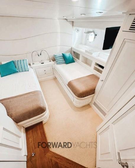 Boat in excellent condition. With its 25 meters, it can accommodate 8 guests in 4 cabins: a spacious full-beam aft owner's cabin, a VIP double and two twins with flat beds. At the extreme bow is the crew area. The interiors are bright, welcoming and elegant. Recent technical and aesthetic improvements, including: hull painting, cleaning and painting of the bilges, overhaul of stabilizers and watermaker, new and complete cushions for the sun-deck.