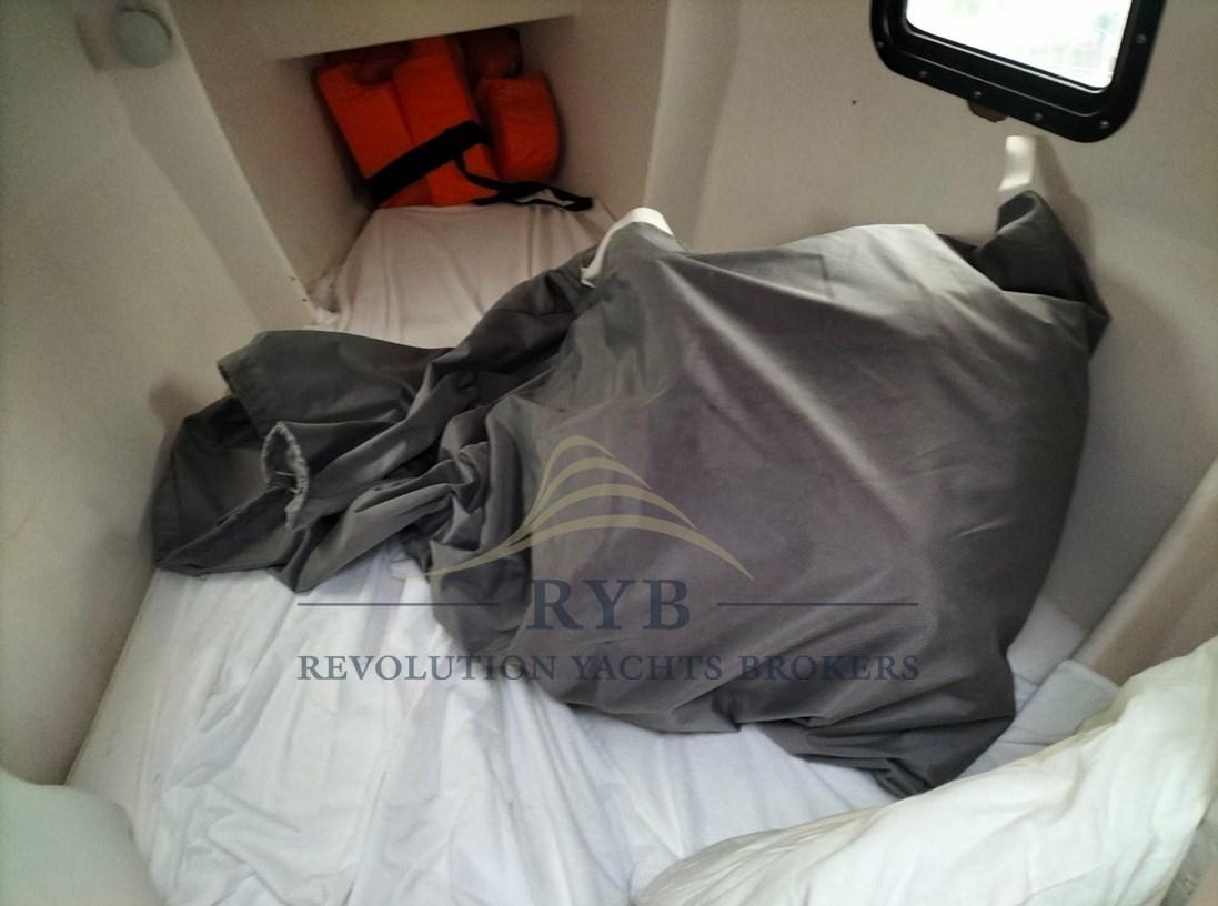 In the bow there is a 190x120 double berth, full-beam bathroom with marine toilet with black water tank, macerator, hand shower with dedicated bilge pump, dinette (cabin height 1.95 m 10 cm more than the Dragonfly 28) with two long benches, one of which can be converted into a 182x70 berth. Detachable table.