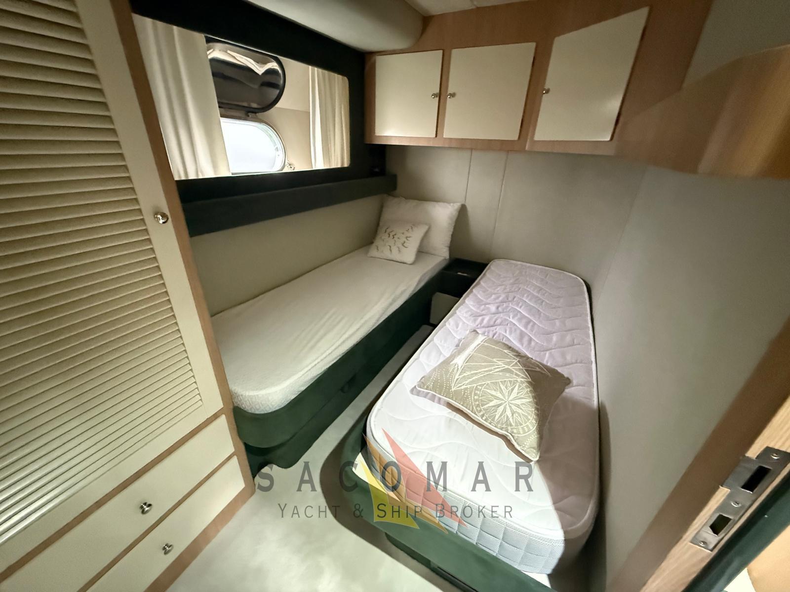 Water pressure pump, Deck Shower, Directional Spotlight, Electric Flaps, Gangway, 3 Electric Bilge Pump, Teak Cockpit, Rollbar, Electric Windlass, swimming ladder, cockpit table, Living Room Foldable Table, Stern Winches.