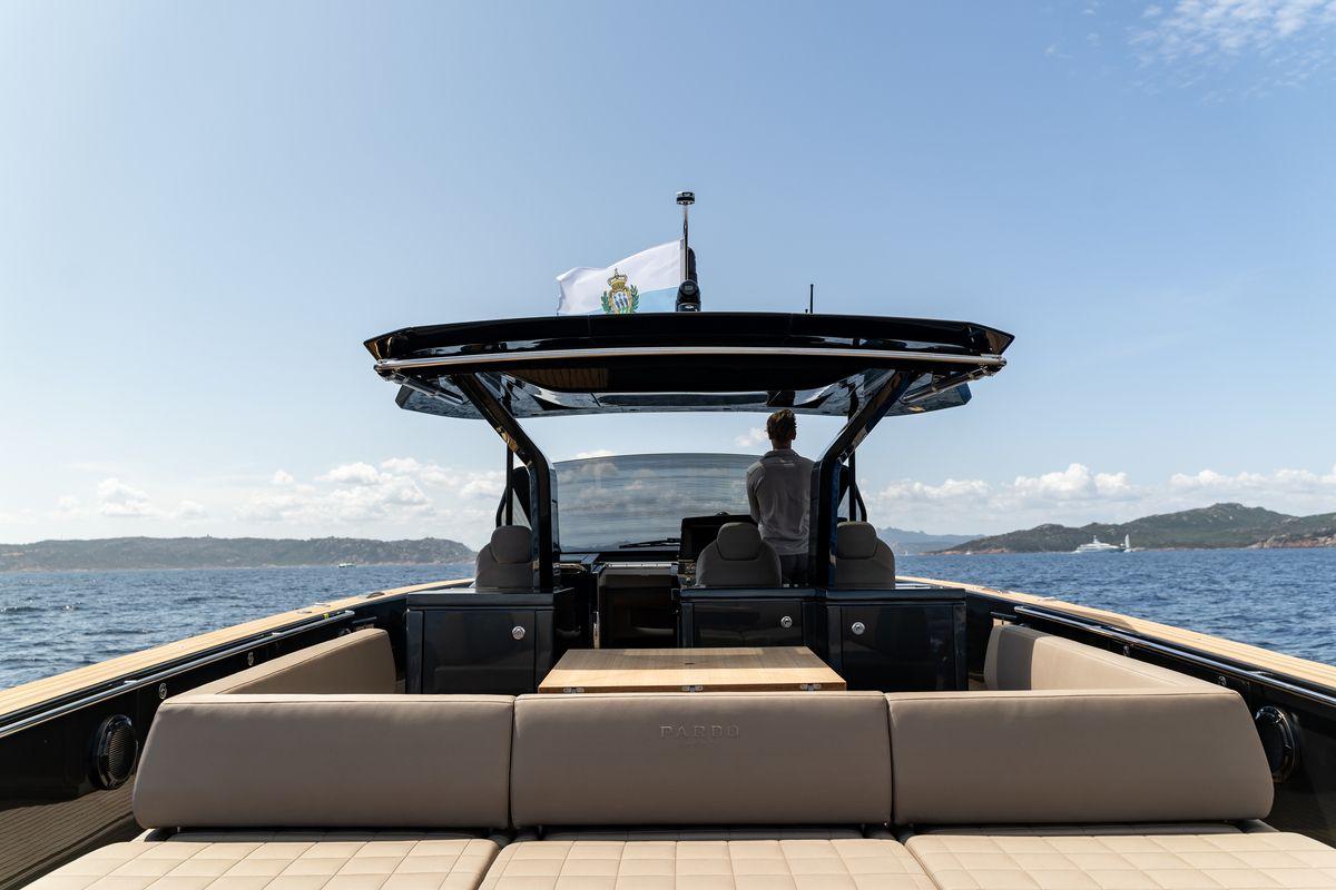 PARDO IS PERFORMANCE AND COMFORT. ITS V-SHAPED HULL HAS A VARIABLE GEOMETRY: 16° AT STERN AND MORE THAN 50° IN THE FORWARD SECTION FOR A GREAT SEAKEEPING AND AT THE SAME TIME A GOOD MANOEUVRABILITY TO PLANE IN SAFE AND FAST CONDITIONS.