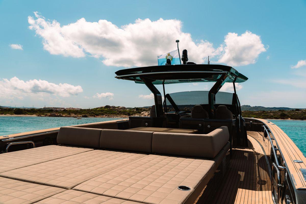 THE DECK IS WALK-AROUND, DEVELOPED ON A UNIQUE SURFACE, FROM BOW TO STERN. THE HIGH FREEBOARD PROVIDE GREAT SAFETY WHEN HAVING CHILDREN OR GUESTS ON BOARD.